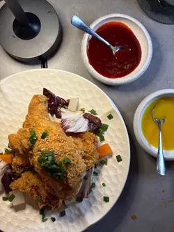 藏身圓方天台嘅半戶外空間(不過而家夏天真係有啲熱haha)餐廳紅黑藍撞色設計、霓虹燈加手繪壁畫,型格得嚟又唔失玩味🥢🍸Happy Hour (平日4-8pm)選擇多,價錢親民,連Mocktail都只係HK$70起,收工chill一chill啱晒🥂◞AI Gen 出嚟嘅嘢食圖實在太好玩啦😆😆重要唔洗錢㗎!App:RoboNeo 學習蘋果 iOS系統表情符號風格,將照片中的食物成為這種風格的 3D貼紙頭像。模仿食物種類攞盤顏色。圖中食物種類攞盤顏色保持一致。背景白底,只要完整食物,確保最終圖像看起來像iOS 表情符號貼紙◞今次食咗幾款Fusion韓菜⤵▹ 原生番茄·泡菜·布拉塔芝士泡菜嘅辣配芝士嘅creamy意外地夾,加埋紫菜脆脆有層次感✨開胃得嚟擺盤都靚靚~▹ 燴牛肋骨牛肋骨炆到入晒味,蘿蔔吸晒醬汁好啱送飯,個醬有少少似濃版galbi jjim但鹹香唔會過重▹ 辣炒年糕配大蝦帶甜辣醬汁夠惹味,蝦爽口彈牙,年糕煙韌,韓式comfort food代表🍤甜品就普通啦~ 最特別一試都係燴牛肋骨🥰🫶🏻𓐐 what we ordered: 原生番茄·泡菜·布拉塔芝士 | 168燴牛肋骨 | 428大蝦辣味炒年糕 | 268Affogato | 78Oatmilk Panna Cotta | 78Strawberry & Lychee Soda | 88White Lotus Misty 7% | 72…查看更多