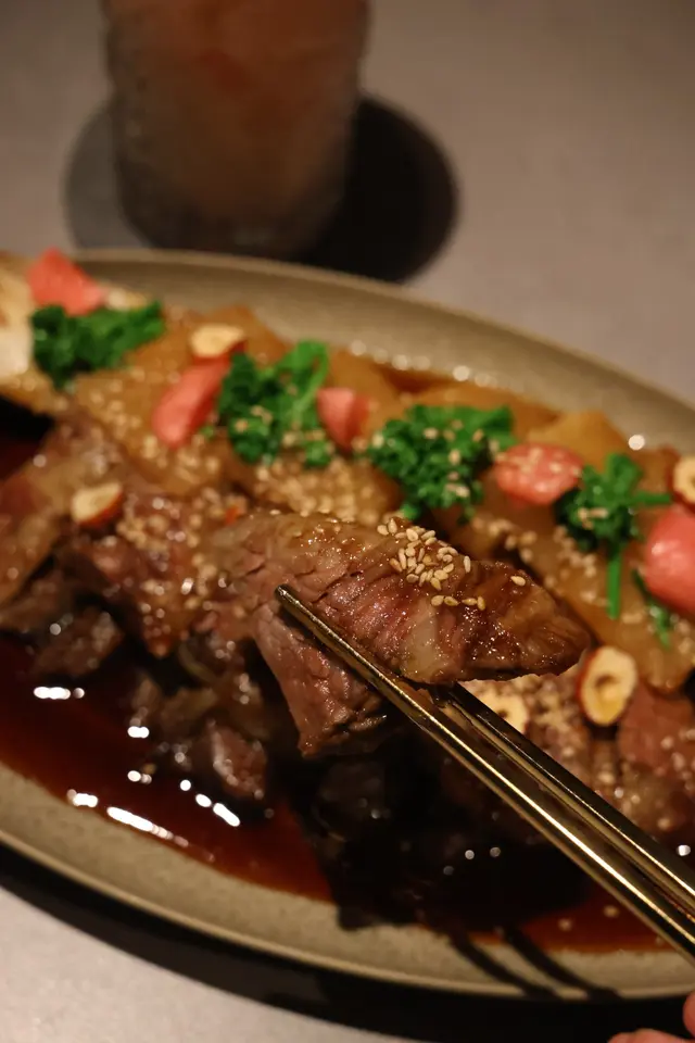 藏身圓方天台嘅半戶外空間(不過而家夏天真係有啲熱haha)餐廳紅黑藍撞色設計、霓虹燈加手繪壁畫,型格得嚟又唔失玩味🥢🍸Happy Hour (平日4-8pm)選擇多,價錢親民,連Mocktail都只係HK$70起,收工chill一chill啱晒🥂◞AI Gen 出嚟嘅嘢食圖實在太好玩啦😆😆重要唔洗錢㗎!App:RoboNeo 學習蘋果 iOS系統表情符號風格,將照片中的食物成為這種風格的 3D貼紙頭像。模仿食物種類攞盤顏色。圖中食物種類攞盤顏色保持一致。背景白底,只要完整食物,確保最終圖像看起來像iOS 表情符號貼紙◞今次食咗幾款Fusion韓菜⤵▹ 原生番茄·泡菜·布拉塔芝士泡菜嘅辣配芝士嘅creamy意外地夾,加埋紫菜脆脆有層次感✨開胃得嚟擺盤都靚靚~▹ 燴牛肋骨牛肋骨炆到入晒味,蘿蔔吸晒醬汁好啱送飯,個醬有少少似濃版galbi jjim但鹹香唔會過重▹ 辣炒年糕配大蝦帶甜辣醬汁夠惹味,蝦爽口彈牙,年糕煙韌,韓式comfort food代表🍤甜品就普通啦~ 最特別一試都係燴牛肋骨🥰🫶🏻𓐐 what we ordered: 原生番茄·泡菜·布拉塔芝士 | 168燴牛肋骨 | 428大蝦辣味炒年糕 | 268Affogato | 78Oatmilk Panna Cotta | 78Strawberry & Lychee Soda | 88White Lotus Misty 7% | 72…查看更多