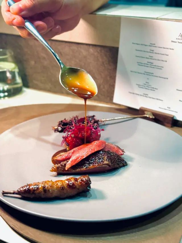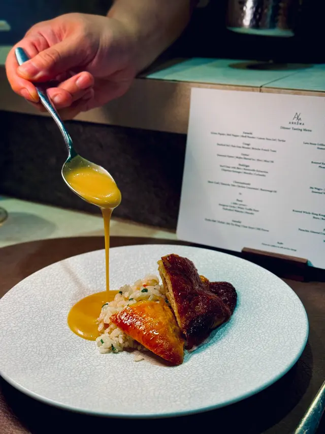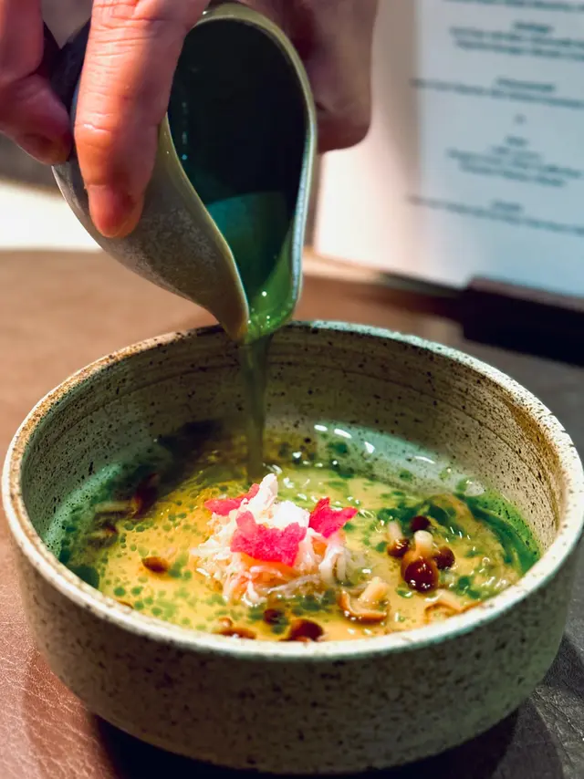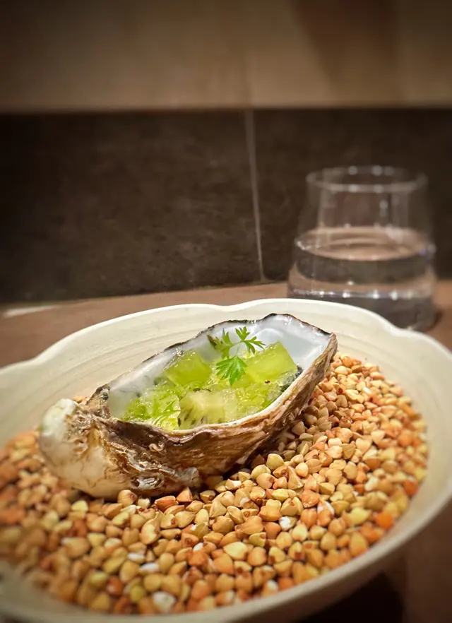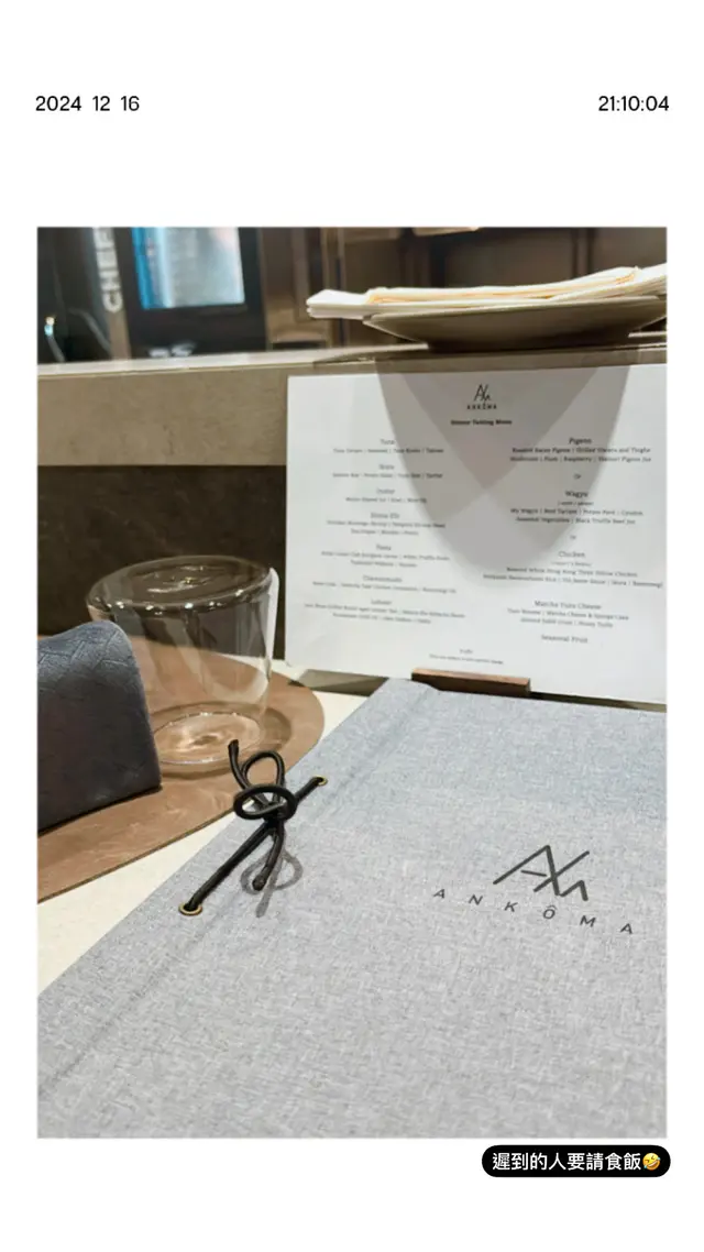 just experienced this incredible 10-course casual fine dining w fam, defo a must for seafood lovers! highlights included the stunning oyster crowned with mojito shaved ice, surf clam with chipolata sausage, snow crab chawanmushi and perfectly grilled lobstera small note: the pigeon course, complete with thigh and heart, wasn't for me. if ur similarly hesitant, i’d highly rec opting for the wagyu or 3 yellow chicken alternativebut the true showstopper? the pistachio mochi tart with pistachio ice cream. i am honestly still dreaming about it. the creamy, nutty ganache with that chewy mochi base was absolute heaven and the best dessert i’ve had all year同屋企人試咗ankôma個十道菜 tasting menu,海鮮迷必試casual fine dining!成個體驗充滿驚喜,由生蠔配莫吉托刨冰、北寄貝配肉腸到鮮味十足嘅雪蟹茶碗蒸及烤龍蝦,道道都唔錯。不過鴿子嗰道菜(連鴿髀同鴿心)我就唔係好啱食。如果你都係咁諗,強烈推薦轉M9和牛或者三黃雞好食好多。但係全晚最難忘一定係個開心果麻糬撻配開心果雪糕,係我今年食過最好味嘅甜品,到而家都仲掛住個味道!…查看更多
