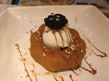 在旺角食完晚餐就當然要去附近食個甜品,見呢間嘅甜品係沖繩海鹽焦糖雪糕冬甩(期間限定版),標榜4重享受,加上我朋友原來都介紹過呢間,叫我去食呢個甜品就更加吸引,於是就坐咗入去,諗住2個人叫2 份海鹽焦糖雪糕冬甩,當我地同店員落完單之後,另一位店員就好似好緊張咁問我地係咪只叫2個甜品,我地當時已經食咗晚餐只想食甜品咁當然話係啦, 點知佢話叫我地外賣!! 我地就問佢點解,佢話有最低消費~但明明所有餐牌都冇寫明有最低消費,同埋最低消費嘅價錢係幾多錢!於是我地就問佢最低消費係幾多~點知佢話$150 我心諗:吓?洗唔洗咁貴?本身仲諗住叫夠最低消費,但咁貴就不了!(其實唔係唔想比,但我覺得要合理囉,黎到cafe一人一個甜品都滿足唔到個最低消費! )再加上果個甜品點可能做外賣?係雪糕黎架喎,仲要下面有舊野外賣食會勁狼狽囉!擾讓咗一陣個店員話:唉見人唔多就比你地係到食!心諗我要講多謝? 我都有比錢架喎!好啦,個甜品到咗個賣相都幾靚嘅,食落唔係話差,不過我比較鍾意D焦糖自己放上面鍾意放幾多就幾多,而冬甩方面食得出油嘅味,唔太好!雪糕太硬,好難先刮到出黎食,本身諗住比OK樣但發生咗上面件事同埋味道一般加加埋埋只好喊樣啦…查看更多