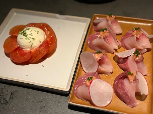 為食花太郎 Fafafoodblog AOAO 前菜牛蒡 同蒜頭醃得酸甜開胃 🍴are sour 88 蚊🍴jade 128 蚊cold brewed jasmine , crisp awamori lime, bamboo leaves🍴hamachiYellow tail , salted egg yolk, bitter melon, pumpkin pure魚生好肥美 配咸蛋皇醬好match 好味既餐前菜 🍴pickled Tomato saladTomato Consamme cream蕃茄夠清新 配d 軟滑 cream就唔錯 🍴TonkatsuIberico pork collar with plum yorkgort sauce用南瓜整成既醬汁 炸得外層好香脆既豬扒 入面伊比利亞豬好彈牙 口感juicy 好味🍴hairy crab butter udon一上枱牛油味好香 蟹肉整成絲 連埋洋葱 葱花 仲有香濃既溏心蛋 烏冬好彈牙 撈埋蟹肉好有層次感 🍴甜品 抹茶cheese cake抹茶味恰到好處 同芝士蛋糕味好match 另外仲有類似草餅既甜品 個口感煙un入面哈蜜瓜餡 好夠味#西餐 #豬扒 #芝士 #烏冬 #蕃茄 #南瓜 Score 平均分< 8/10>Taste 味道:👍🏻👍🏻👍🏻👍🏻Present 外觀:👍🏻👍🏻👍🏻👍🏻Decor&Hygiene 環境衞生:👍🏻👍🏻👍🏻👍🏻Value for $ 性價比:👍🏻👍🏻👍🏻👍🏻Service 服務:👍🏻👍🏻👍🏻👍🏻~~~~~~~~~~~~~#aoao 中環皇后大道中38 號萬年大廈14 樓~~~~~~~~~~~~#fafafoodblog #為食花太郎 #fafafoodblog中環====================Openrice 🍚: 花太郎任何美食😋歡迎inbox 我 , 等我食完開心share!🤓…Read More