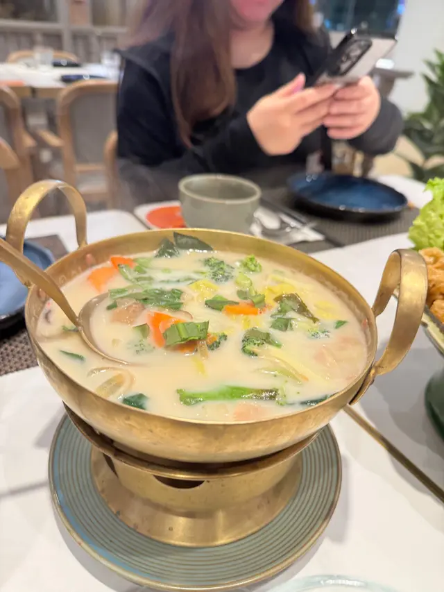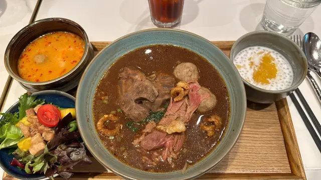 金鐘太古廣場嘅Apinara,係附近番工我就決定試下佢哋嘅午餐套餐啦,包括泰式和牛船麵、前菜沙律、冬蔭公湯同芒果西米露。餐廳環境好chill,氣氛好relax,啱哂商務飯定係悠閒聚餐。服務態度好友善,真係有種被照顧嘅感覺。泰式和牛船麵有濃厚嘅泰式風味,牛肉腍腍多汁,船麵又有嚼勁。沙律新鮮又爽口。冬蔭公湯又酸又辣,唔會太猛,好正宗啊!最尾嘅芒果西米露甜而不膩,完美嘅ending。雖然價錢唔係平平,唔係每日都去得起,不過偶爾一次,係種享受啦。查看更多