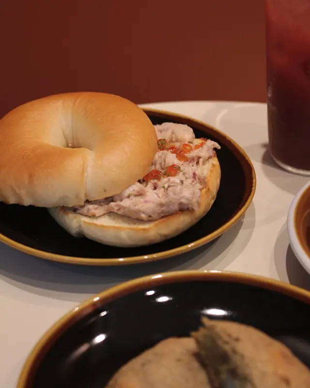 Plain Bagel w/ Tuna Salad and Salmon Roe