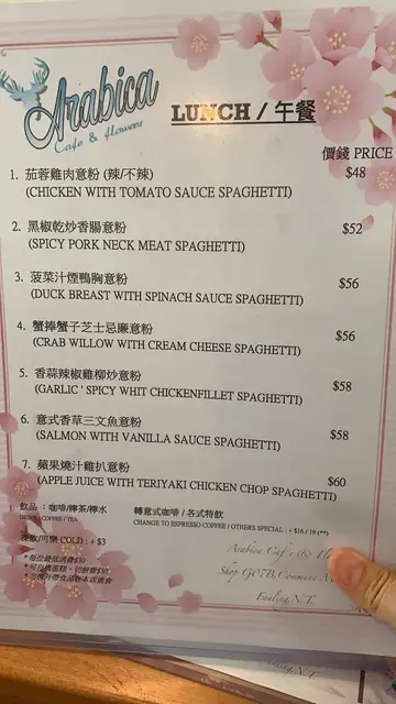 開店已經有一段長時間,但眼見真係好少人光顧,自己親身經驗後,終於明白點解。諗住靜靜地食個午餐,中午時分見店內只有一位客人,就走入去試吓,入內後有員工會提供Menu俾你,然後自己決定好食咩就去收銀機度落order,叫左意式三文魚意大利粉同手沖耶加雪夫=$106。先到嘅係意粉,意粉味道可以,雖然坐底等待時水都無杯,但可唔可以唔好淨俾一隻叉我食意粉,其實俾多隻匙羹會方便啲😅。食到一半杯手沖出黎,其實一出黎見到個杯同壺嘅熱氣,就知杯咖啡超熱,但手沖真係唔需要咁熱...試完,苦、澀......,真係覺得好浪費,飲多兩啖真係飲唔落...,眼見佢餐牌有咁多咖嘛揀,以為咖啡師應該好掂,但耶加雪夫完全唔係果樣野