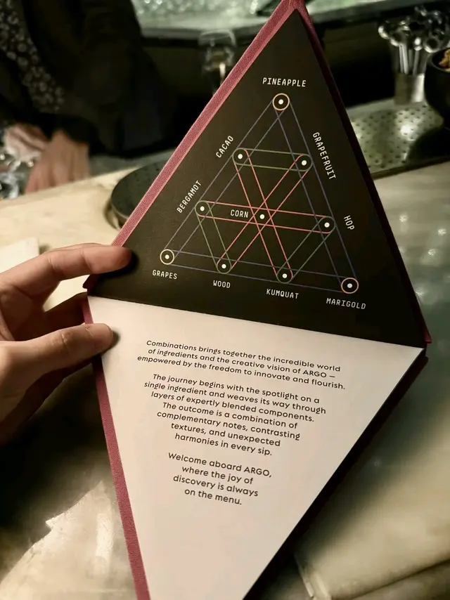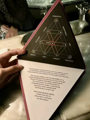 今次去咗四季酒店入面嘅Argo,整體體驗好正,無論係飲品質素、服務定環境都保持到五星級水準,絕對值得同大家分享!一坐低,店員就送上橄欖同爆谷做小食,仲有杯Welcome Drink~係香檳加隻小熊軟糖!個軟糖浸一浸香檳再食,口感會變得更軟糯,仲帶有氣泡感,幾得意!我哋點咗幾杯 Cocktail 同小食:Pineapple Highball味道清爽,菠蘿香突出,容易入口,適合鍾意生果味重嘅朋友。Grapes!葡萄味好出,飲落順喉,甜度適中,係一杯好舒服嘅酒。Cantina Margarita呢杯有Mezcal獨特嘅煙燻風味,層次豐富,鍾意濃郁味道嘅人應該會欣賞。Cheung Chau Clover Club (平安)杯邊用樹莓粉寫咗「平安」二字,意念來自長洲,好有本地情懷。味道係莓果酸甜風格,酒身順滑,視覺同味道都滿分!薯條menu冇寫,但可以直接同店員點!送酒一流。服務方面,店員專業友善,介紹清晰,反應又快。環境方面,燈光較暗,音樂細膩,氣氛輕鬆舒服,好適合傾計同 chill 下。整體嚟講,係一間有質素、有心思嘅高級酒吧,推薦大家嚐試!…查看更多