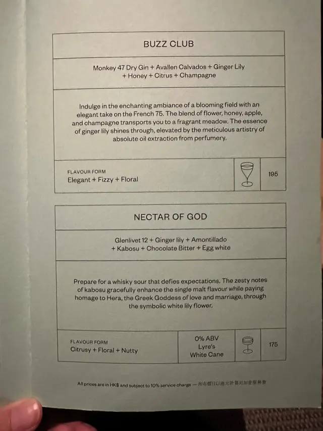 今次去咗四季酒店入面嘅Argo,整體體驗好正,無論係飲品質素、服務定環境都保持到五星級水準,絕對值得同大家分享!一坐低,店員就送上橄欖同爆谷做小食,仲有杯Welcome Drink~係香檳加隻小熊軟糖!個軟糖浸一浸香檳再食,口感會變得更軟糯,仲帶有氣泡感,幾得意!我哋點咗幾杯 Cocktail 同小食:Pineapple Highball味道清爽,菠蘿香突出,容易入口,適合鍾意生果味重嘅朋友。Grapes!葡萄味好出,飲落順喉,甜度適中,係一杯好舒服嘅酒。Cantina Margarita呢杯有Mezcal獨特嘅煙燻風味,層次豐富,鍾意濃郁味道嘅人應該會欣賞。Cheung Chau Clover Club (平安)杯邊用樹莓粉寫咗「平安」二字,意念來自長洲,好有本地情懷。味道係莓果酸甜風格,酒身順滑,視覺同味道都滿分!薯條menu冇寫,但可以直接同店員點!送酒一流。服務方面,店員專業友善,介紹清晰,反應又快。環境方面,燈光較暗,音樂細膩,氣氛輕鬆舒服,好適合傾計同 chill 下。整體嚟講,係一間有質素、有心思嘅高級酒吧,推薦大家嚐試!…查看更多
