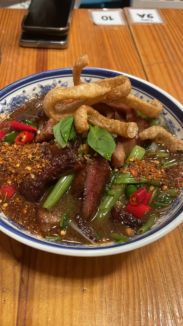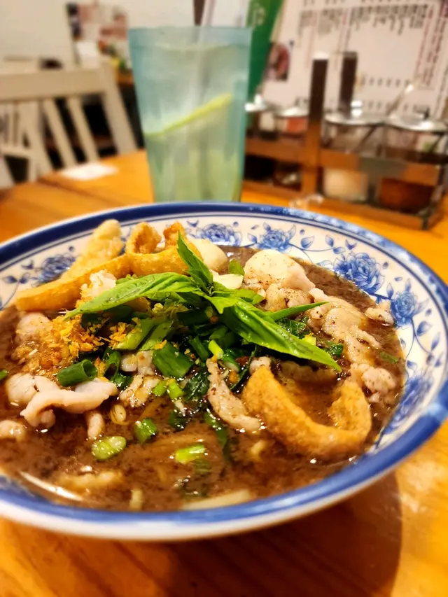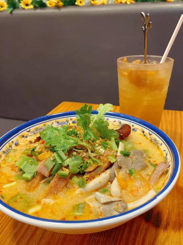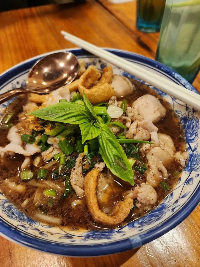 分左2間舖,一間食小菜,細D果間食粉麵,2個後生泰國男女主理,晚飯時間都係街坊look客人😆特色遊船河好濃郁的湯頭,有泰國多層次的味道,後勁帶點甜,唔會好重味精味豬潤有小小過熟豬皮同肉片同丸正正常常夜晚食飲品要加$20真係太貴無叫到,食個粉都OK查看更多