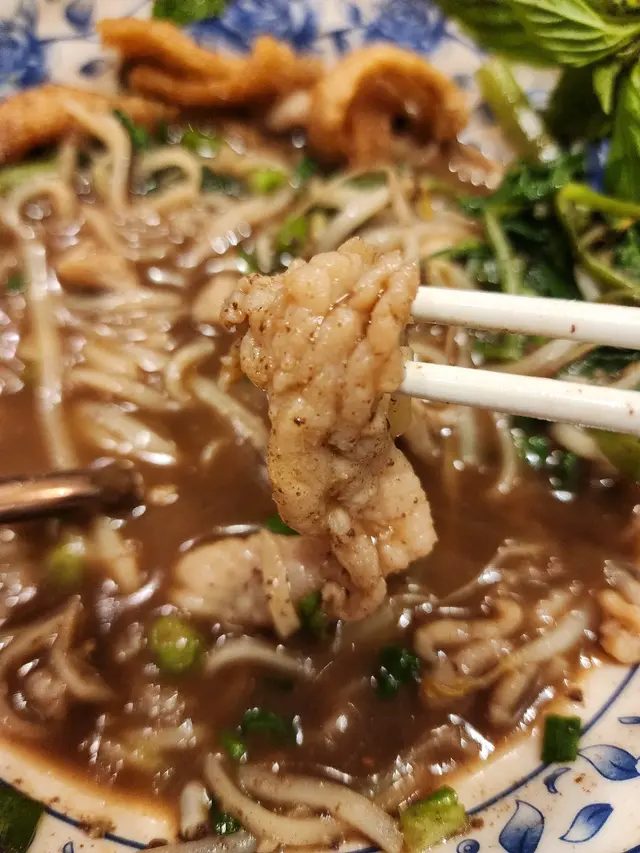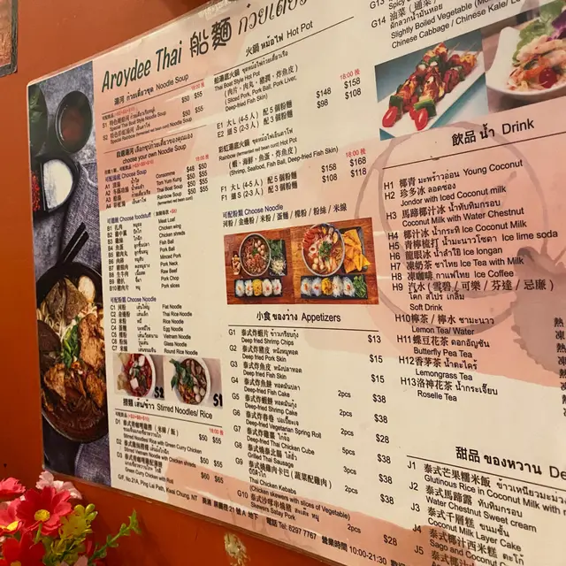 朋友介紹黎食,係工廠區入面,好講都唔會留意到門口已經好濃厚既泰國feel舖仔細細,得4-5張枱咁岩天氣涼,冇開冷氣/風扇,只係開左後門做通風但都唔會熱/焗星期六晏晝冇乜人,但佢lunch到16:00,不得了不過我就叫左佢全日都有既船麵 $50 同凍0水 +$3個湯底係正宗船麵既顏色,深深啡色飲左啖湯,真係不得了,入口係甜架之後就係濃濃既肉味仲有通菜係面,索曬D湯,好甜好香肉片超級滑,係入口即溶既feel滑到分唔到係雞定豬肉,平時飲粉都唔會食d肉片但今次真係全部食曬最後食曬D粉,D湯都比我飲左一半🤣飲咁多都唔會口渴真係 真係 真係好值得去食(重要既事情要講3次)查看更多