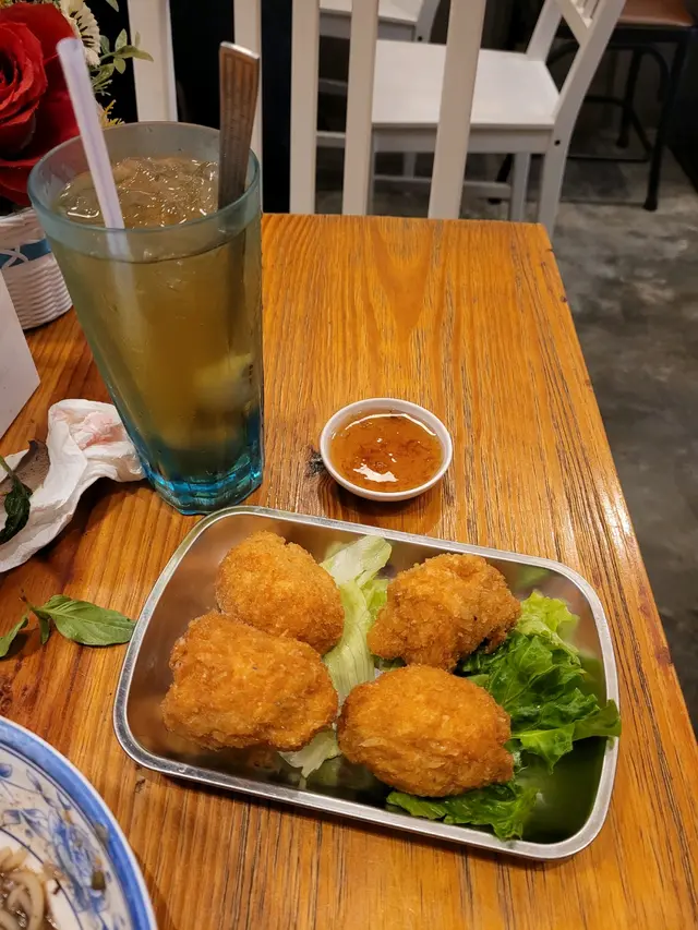 作為一個愛吃泰式船河的吃貨,我閒時便到不同泰國餐廳吃船河,這間店是我吃後覺得全港最好食泰式船河之一。因為除了好食之外,價錢超抵食。我已不只一次到訪這店,但每次都覺得超好吃。我叫咗特式船河($50), 配料包括:豬肉丸、豬肉片、豬潤、通菜和脆炸豬皮,麵底是金邊粉。船河的湯底味道很濃,但不會很重香科味,味道的剛剛好不會像其他餐廳那樣超鹹湯底。 整碗船河份量剛好。我亦叫咗泰式蝦餅($38 兩件), 蝦餅的size以這價錢來講算大,炸得香脆,蝦餅超超彈牙好爽口,味道非常ok,配上梅子醬非常好吃,係必吃推介。餐飲我叫咗龍眼冰,味道不算濃但算好飲。唯一不好地方是這店的位置有點隔涉和難找,亦不近地鐵站,所以我才第二次到訪。查看更多