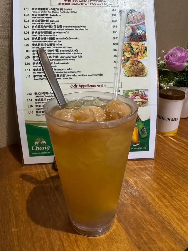 呢間無意中發現嘅隱世小店下午2:00到店一個客人都冇估唔到佢星期日都有做Set Lunch Menu叫左泰式鮮蝦炒金邊粉味道酸酸甜甜幾開胃另外叫咗個泰式乾炒炒河,要雞肉嘅呢個味道鹹鹹香香同頭先嗰個好唔同河粉入口順滑佢兩碗炒粉全部都係即叫即炒份量都唔少套餐分別加$5要咗個龍眼冰特飲同埋一個青檸梳打兩個餐埋單都係$110餐廳嘅職員全部都係泰國人正宗泰國人主理,性價比相當之高不過地點又係有啲隔涉嘅喺葵涌地段下次有機會經過絕對會嘗試佢其他食物查看更多