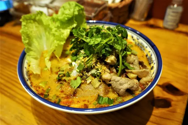 我地岩岩喺峇里玩完回港 無緣食灘邊街邊湯河粉所以落機第二日即係今日決定補番數無意中搵到呢間 google同OpenRice comment唔多 人氣唔高但望到人地post既相已經確定係佢喇(個人只睇食物賣相同直覺)(位置上可能有d輸蝕 但無阻我呢d為食人)一食難忘 估唔到可以咁好食佢既麵 湯底 香料 落好足船麵精粹就係夠濃烈夠香 佢做到去到個雞肉串燒份量同味道 一d都唔輸蝕 一串大大串我地叫左兩串都差d想加單佢overall 甚至有少少超越左其他泰國舖 出面d舖頭有部分串燒都係油炸佢唔係!Ps 船麵個豬皮係一絕好少會衝動想寫食評 但良心又做得出色既小店 佢值得更多人知道期待下次去食晚餐因為有燒全翼同燒豬頸肉查看更多