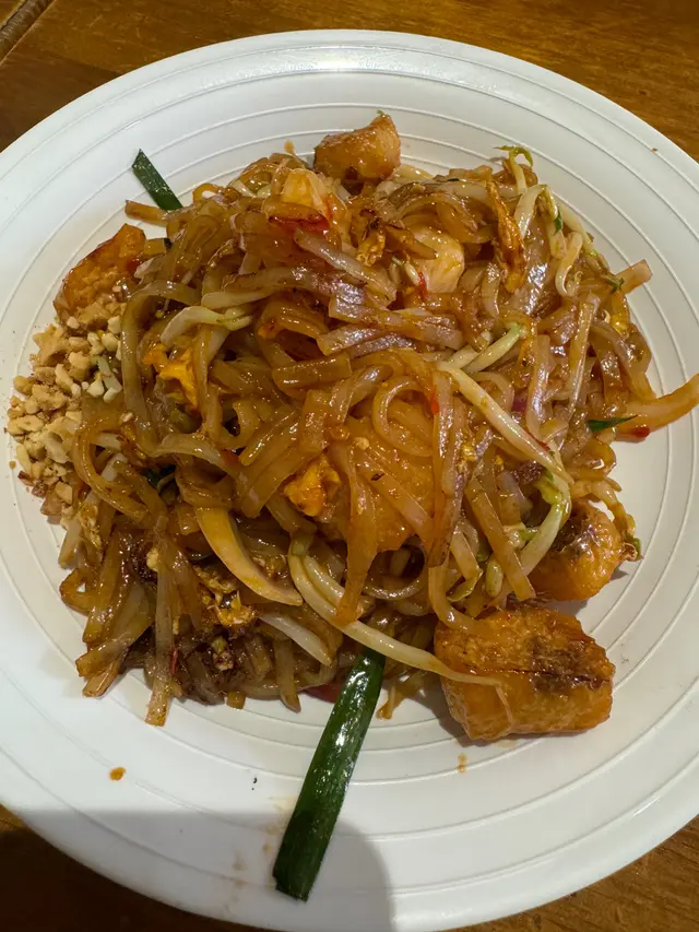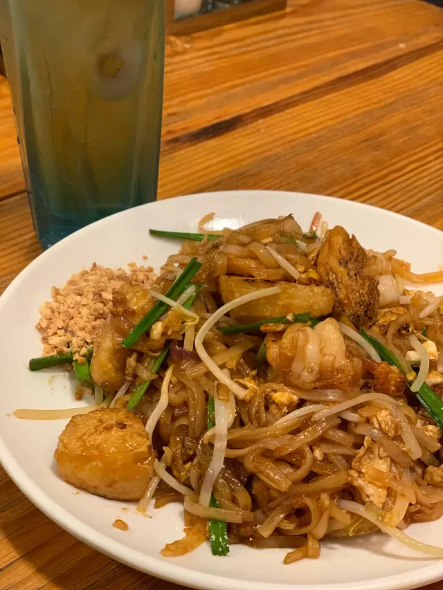今日我去左葵涌打磚坪街附近展麗徑21號去舖食泰國美食,舖頭名稱係船麵。舖店名稱叫船麵咁佢招牌菜一定係泰國黑啡色湯汁既船麵喇。今次我就冇選擇佢地招牌菜,而選擇左泰國菜都出色既炒金邊粉,佢既金邊粉下午茶價錢都係$48加特飲都係$5係好低食。 佢既金邊粉都好足料,有3隻大蝦,豆卜等。講真$48有3隻大蝦仲想點。咁味道方面,炒金邊粉本身炒嘅時候已經加入左青檸,食起上嚟就甜酸甜酸。好岩啲胃口唔好既朋友仔食,十分推薦。查看更多