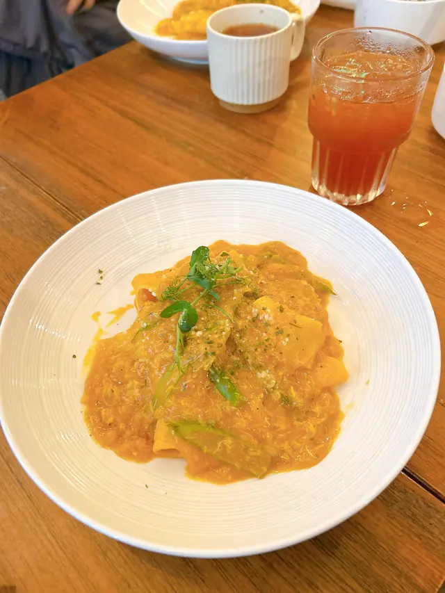 呢間cafe位於中環,每個樣野都絕對係有心之作,餐廳間中都轉下menu讓食客每次黎到都有唔同選擇,唔會食幾次就覺得悶,而每個餐都有餐湯或沙律+飲品!餐廳都有大玻璃窗感覺好chill好舒服🍽️ 蘑菇湯餐湯今日係蘑菇湯,每一啖都食到蘑菇粒,蘑菇味濃郁🍽️ 蟹肉南瓜手工闊帶麵係出面比較少cafe有呢個闊帶麵,呢個手工闊帶麵口感好好唔會太硬,每一啖都食到蟹肉,南瓜汁同個蟹肉好match,成個意粉都好鮮味!🍽️ 意式肉丸紅醬手工闊條麵呢個意粉有三粒肉丸,咬落去肉汁好香唔會煮到好乾,再加埋紅醬(即係蕃茄醬)酸酸地好開胃🍹熱情果茶餐飲係熱情果茶,係出面飲果茶通常都要少甜/走甜,但呢杯飲落完全唔會得死甜既味反而仲有淡淡既熱情果香…查看更多