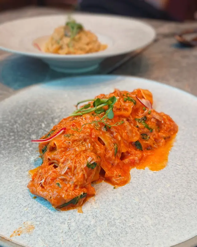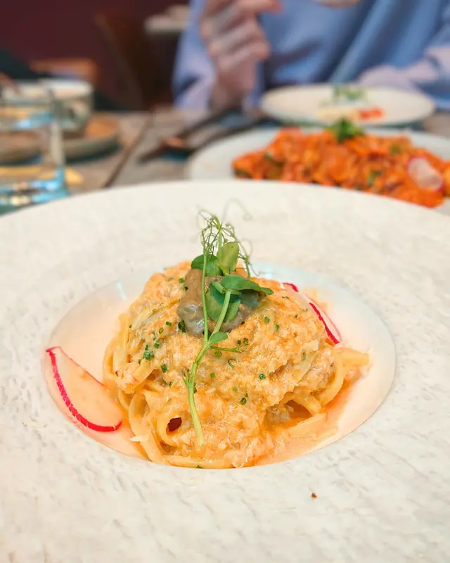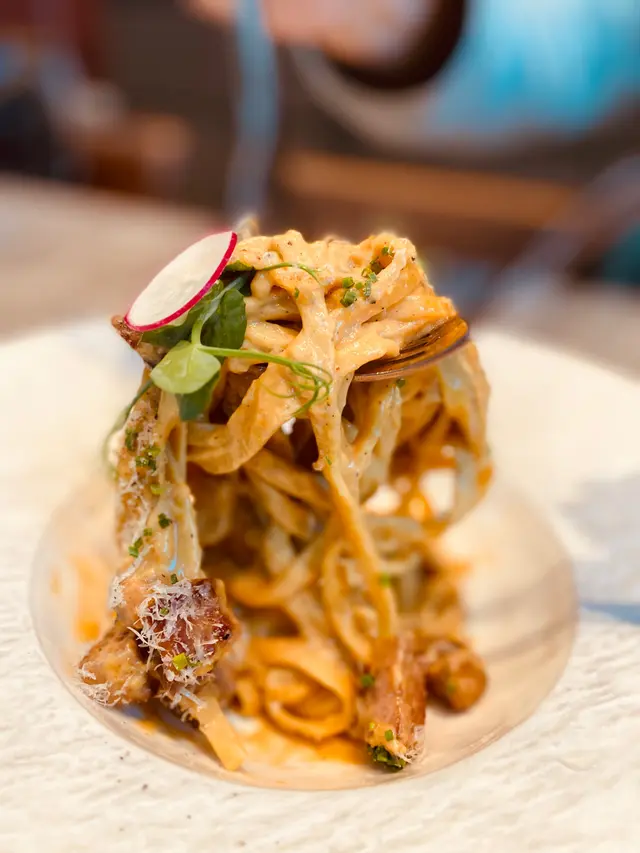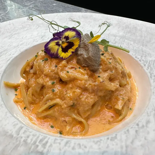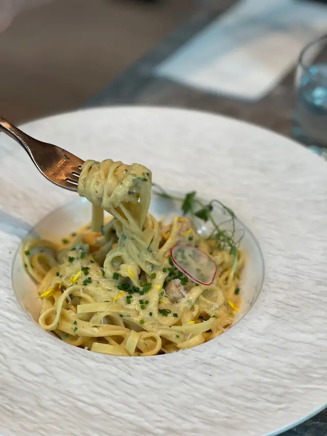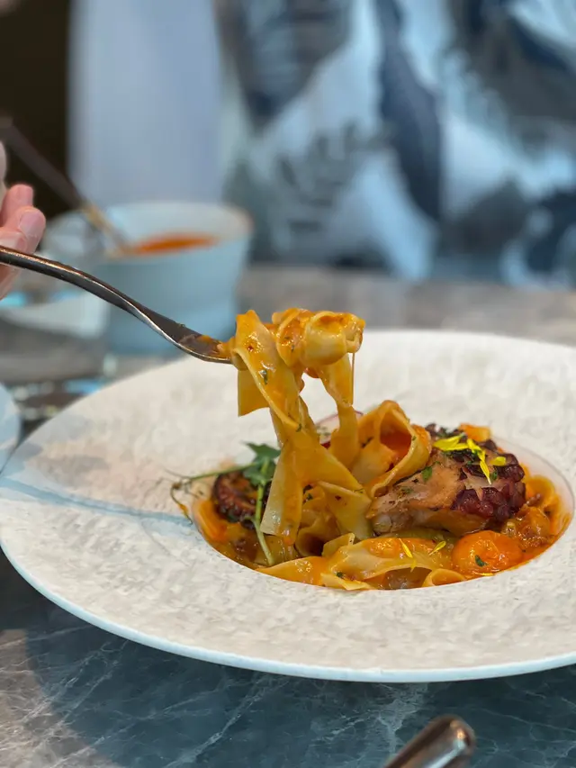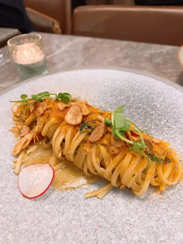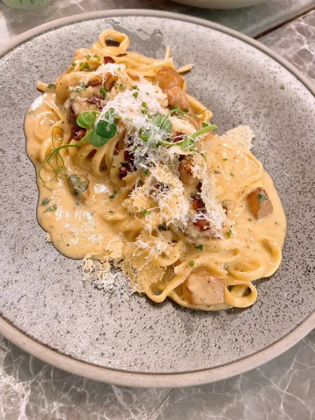 餐廳主打自家製作手工意粉,結合日、意、法、本土等元素,帶出新派口味充滿驚喜味道!!餐廳面積不大,但樓底極高,環境開揚舒適,約會好地方!!🌇- 香煎廣島蠔配山葵蛋黃醬 HK$78 🦪鮮味十足廣島蠔!!香煎廣島蠔散發焦香,味道極為濃郁。配上三文魚籽及山葵蛋黃醬,充滿日式風味,鮮味無比!!- 蟹頭油蟹肉蟹膏忌廉手打扁意粉HK$178 🦀🍝手工意粉結合本土元素!!加入大量蟹肉、蟹油及蟹膏,蟹味濃郁充滿大海鮮味!!搭配日式蟹膏,濃郁甘香!!手打扁意粉充滿蛋香,口感爽彈有質感,絕對要試!!- 威尼斯鴨肉醬手打闊條意粉 HK$208 🦆🍝香港少見鴨肉醬意粉!!鴨肉醬充滿肉碎,富有鴨肉獨有的甘香。配上自家製作手工闊條意粉,蛋香十足,鴨香與蛋香融為一體!!- 特濃朱古力蛋糕 HK$58 🍫🍰超濃郁口感豐富!!蛋糕表面朱古力漿超級濃厚順滑,甜度剛好,內部蛋糕體濕潤且充滿朱古力甘香,味道層次豐富,讓人愛不釋手!!…查看更多