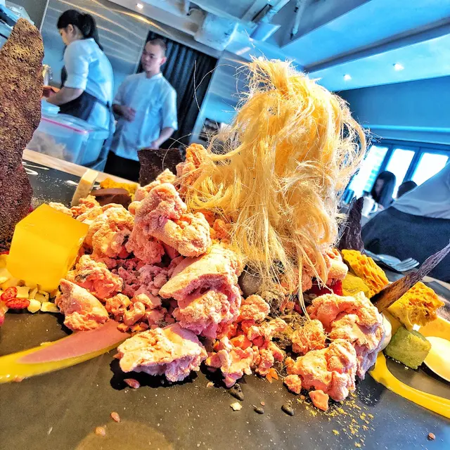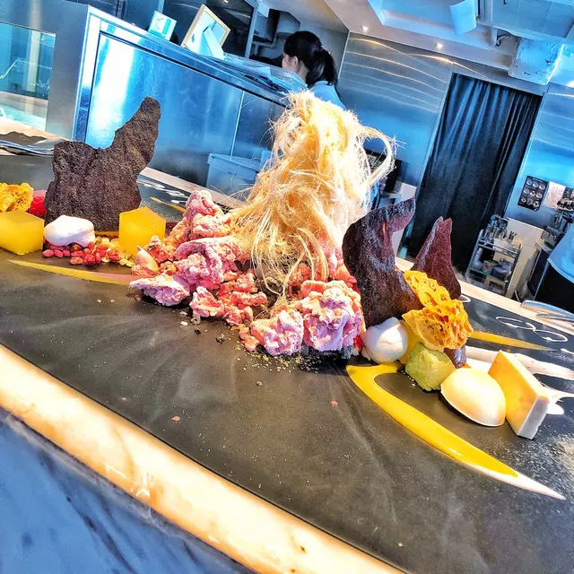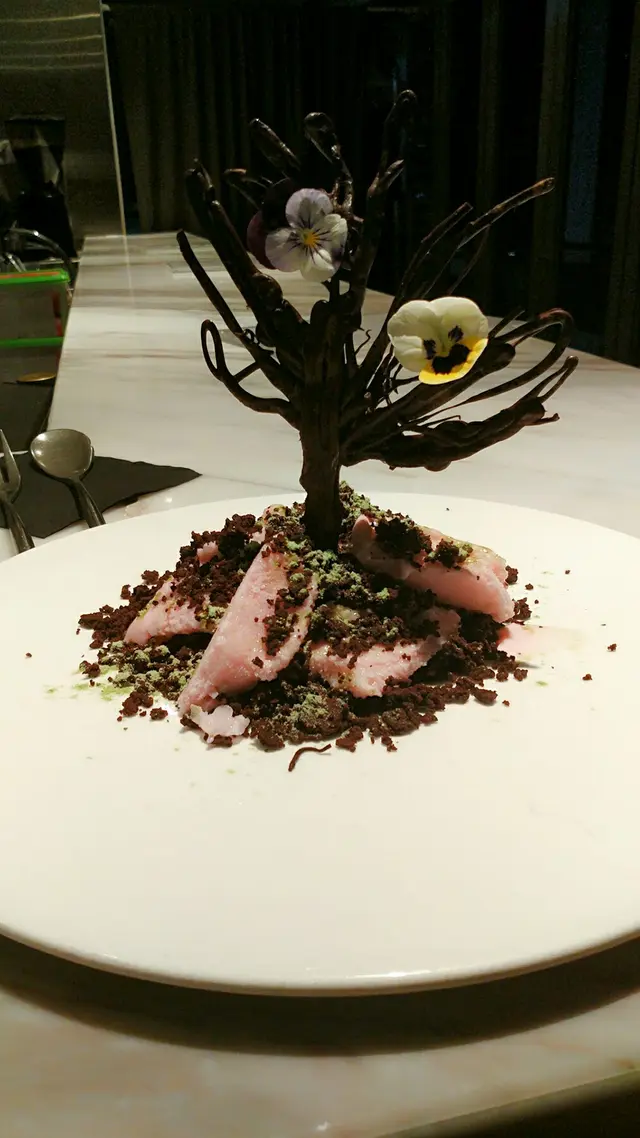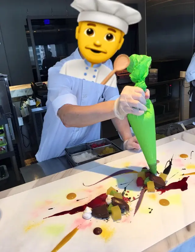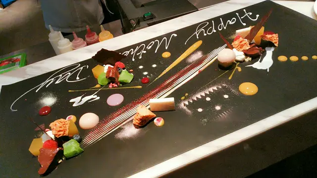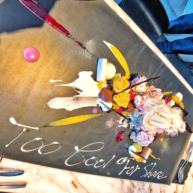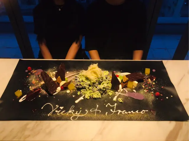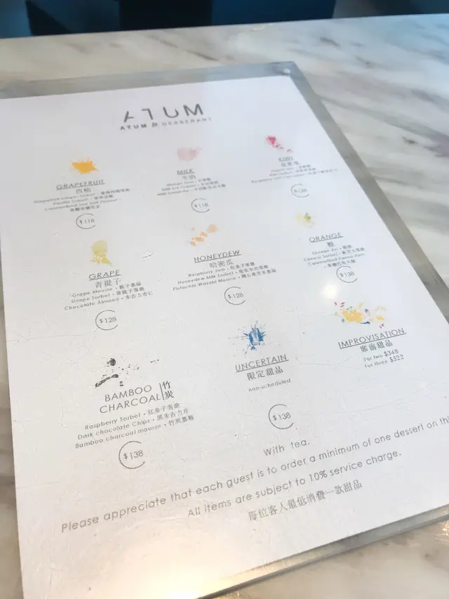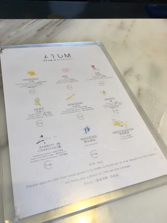 個日係女朋友生日就去左呢間atum食,一開始都聽過佢個名有得畫畫呀又剩既,但係自己係藝術白痴又點會呀,好釆個日佢都幫我地完成曬。環境非常之靚又安靜,坐低之後會有一位你個晚專屬既師傅招呼自己,之後佢就俾你係三種顏色分別係白,黑同灰,我地個晚就揀左白色因爲感覺好乾淨,之後師傅係上面加下顏料啫喱呀朱古力呀係上面,加之前都會俾我地試下味咁,係全部都食得,最後幅畫就好似圖中咁好靚而味道都十分不錯,雖然自己唔鐘意食西式甜品但見到咁用心咁靚,最後都俾心機食,食到最尾都食.....唔曬