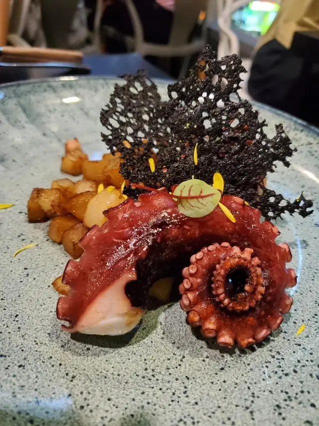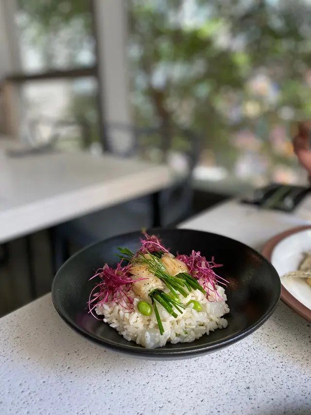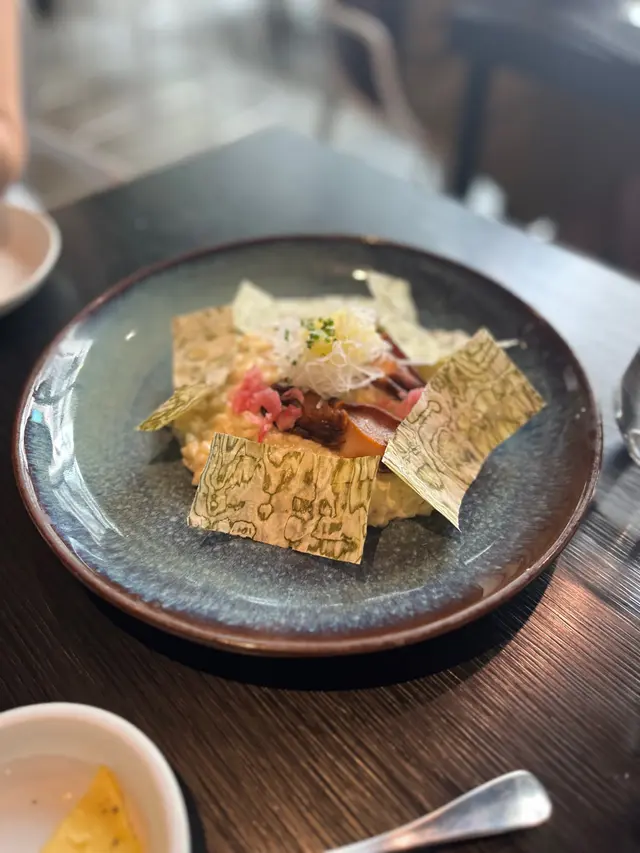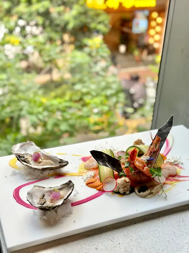 This is my second time to go to Atum for dinner. The food quality remains nice and artistic.That night we ordered the seafood platter with fresh oyster, shrimp, scallop, salmon, caviar with foie gras, sea urchin and crab. All seafood was fresh and yummy. The second dish was creamy risotto and abalone in crab cream sauce. The abalone was cooked very soft and got a rich taste of crab cream. Together with risotto was a good match. Last but not least, it was the complimentary dessert when you ordered the seafood platter. As we marked that it was a birthday and anniversary celebration, the greeting was warmly presented one the dessert dish. The dark chocolate ice cream and raspberry sorbet were both tasty and marked a wonderful end to our dinner. …查看更多