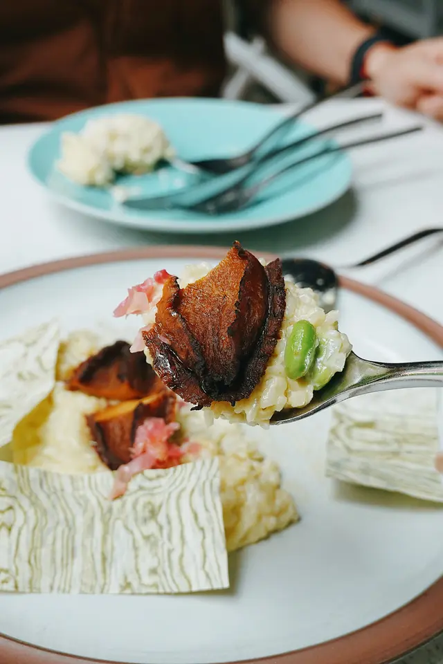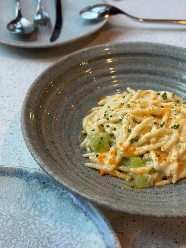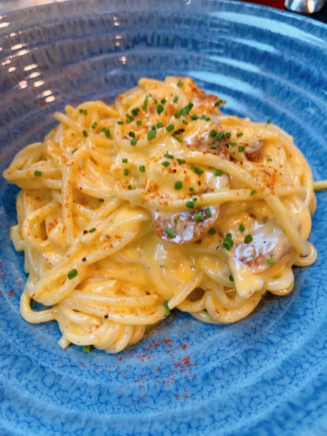 去完附近睇醫生,順便揾朋友食個午飯。之前book mark 左呢間,終於食到。舖頭有啲難搵,喺K11 Art Mall入面嘅一樓,上完電梯仲要左轉右轉先搵到。可能係星期六日冇set lunch,主菜選擇唔多。鮑魚蟹膏飯唔錯👍🏻$188鮑魚一啲都唔韌,好腍好易嚼,仲好入味,啲蟹飯都唔錯,不過覺得個份量少咗啲。煙燻蛋黃辣肉腸意粉🍝$178意粉不過不失啦,啲蛋黃都幾香、辣肉腸少咗啲啦,都係份量少。都有比餐包食嘅,不過唔係咁鍾意佢用個布袋裝住,感覺好似10年都唔使一次咁。價錢都偏貴啦,唔食物質素唔錯啦不過CP值唔高。…查看更多