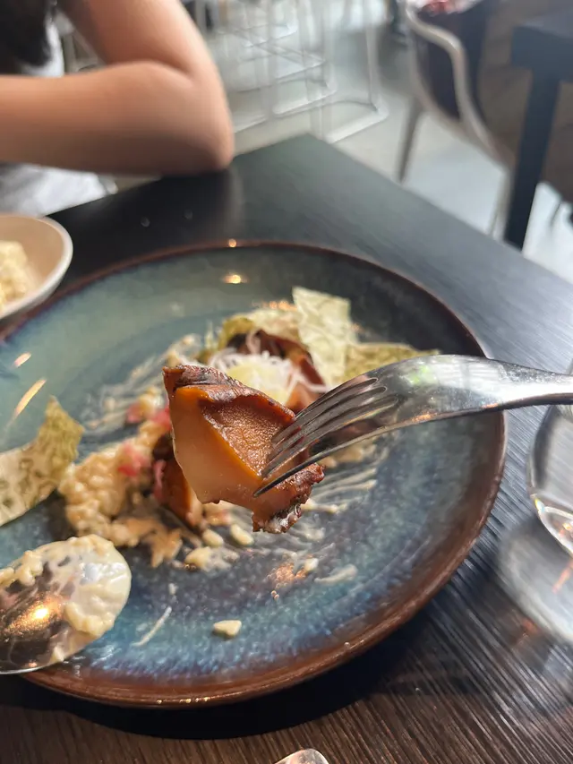 Stewed Rice with Abalone and Crab Paste:The aroma wafting from the bowl was intoxicating, a mix of the sea and earthy goodness. The abalone was tender and succulent, effortlessly pairing with the rich flavors of the crab paste. The rice, cooked to perfection, absorbed the essence of the seafood, creating a harmonious blend of textures and tastes. This dish was a testament to the chef's skill and creativity, turning a simple rice dish into a symphony of flavors that danced on my taste buds.Bamboo Charcoal Milk Coffee:The first sip was a revelation – the coffee was velvety-smooth with a hint of smokiness from the bamboo charcoal. The milk added a comforting creaminess, balancing out the robust coffee flavors. This beverage was not only a treat for the palate but also a visual marvel, making it an Instagram-worthy addition to any meal. Organic Mixed Berry Tea:The aroma was tantalizing, a fruity bouquet that promised a burst of flavors. True to its promise, the tea was a delightful fusion of sweet and tangy notes, each sip akin to biting into fresh berries on a sunny day. The organic quality of the tea shone through, and it was evident that the ingredients were carefully selected to deliver a top-notch experience.…查看更多