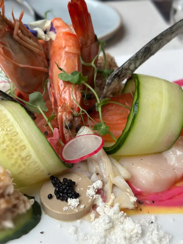 上上下網睇到佢八月尾休業,即刻衝嚟寫返個道別食評。上次平日17:30 high tea無乜其他食客,成個場得兩台,今次明顯多返人,可能大家都嚟say bye bye🥹人手一如既往好足夠,服務依然好,侍應好友善,所有野食上台都有簡單介紹一下。不過窗邊位坐落同隔離台有啲近,幾乎可以一齊傾計,拎住大袋出入唔方便。講返正題,藝術餐廳,野食、餐具當然都好靚。餐包配黑胡椒牛油海鮮拼盤二人size最出色係愛爾蘭生蠔,新鮮爽口,配白酒啫喱同水果雪葩,味道好夾。蟶子、帶子、魚子、三文魚、鵝肝,合格有餘。醬料都好用心,乳酪汁有唔同味,橄欖油粉簡直係錦上添花,但蝦就唔太新鮮,蝦味唔出,口感有少少霉,蟹肉亦都普通。鹹蛋黃萵筍蟹肉特飛麵最令我驚喜係呢個意粉,特飛麵係香港唔算常見,我每次搵餐廳都要睇睇有無。特飛麵口感比較彈牙煙韌,表面比較粗糙所以好掛汁。意粉睇落細份但實心,醬汁濃稠,兩個人食都夠飽。略嫌鹹蛋黃味唔夠出,同埋真係太杰。65%朱古力奶奶味唔出,偏甜,不過不失。竹炭朱古力雪糕朱古力味好濃,但份量好細,唔夠兩個人食,配料麻麻。…查看更多