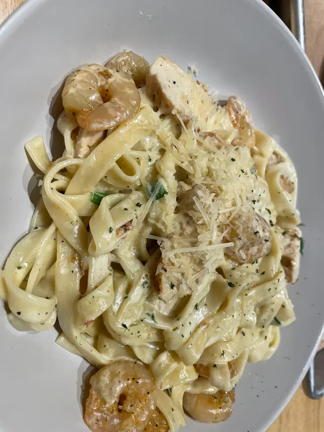 叫咗個芝士卡邦尼意粉味道真係好正!麵條煮得剛剛好,彈牙又有咬勁。意粉上面嘅卡邦尼醬非常濃郁,帶有濃厚嘅芝士味,最出色嘅部分係佢嘅芝士,融化喺麵條同埋醬汁入面,令味道更加濃郁,真係驚艷到我!而且,佢嘅份量真係好足夠!一碟芝士卡邦尼意粉已經夠滿足我嘅胃口。麵條同埋醬汁嘅比例正好,唔會太乾或者太湯。仲有啲配菜,例如嫩滑嘅煙肉同埋蔬菜,增加咗層次同口感。整體上嚟講,份量足夠飽肚。最令人驚喜嘅係,佢嘅價格都好實惠!你可以享受到滿滿嘅芝士味,而唔使為咗價錢擔心。真係物超所值,又可以滿足我對芝士嘅渴望!總括嚟講,呢個芝士卡邦尼意粉真係好正呀!麵條彈牙,芝士味濃郁,份量足夠,。如果你鍾意芝士同埋意粉,絕對要試下呢個芝士卡邦尼意粉!…查看更多
