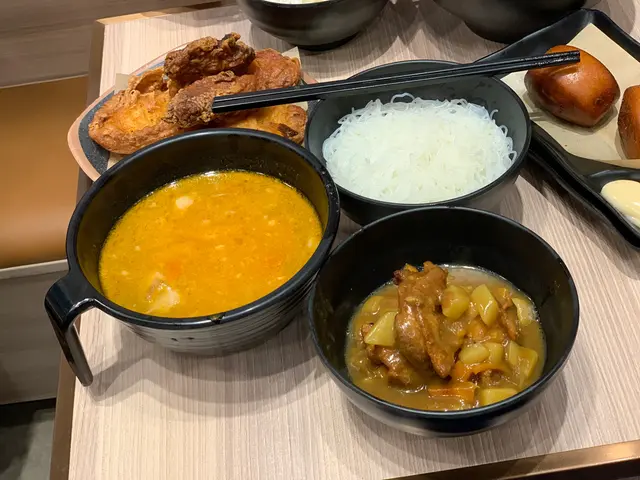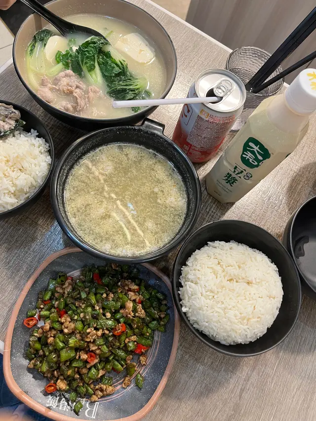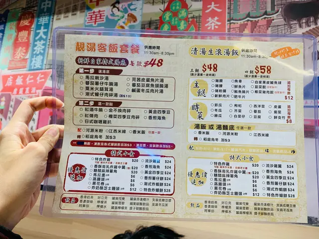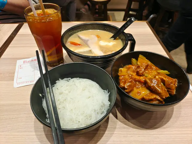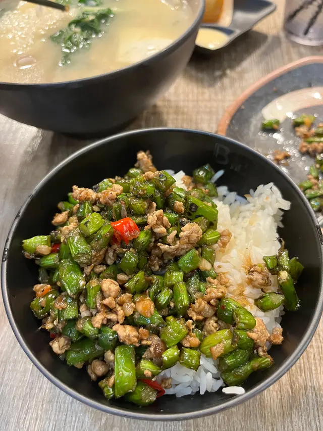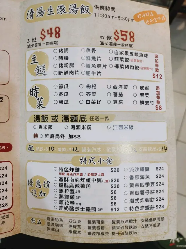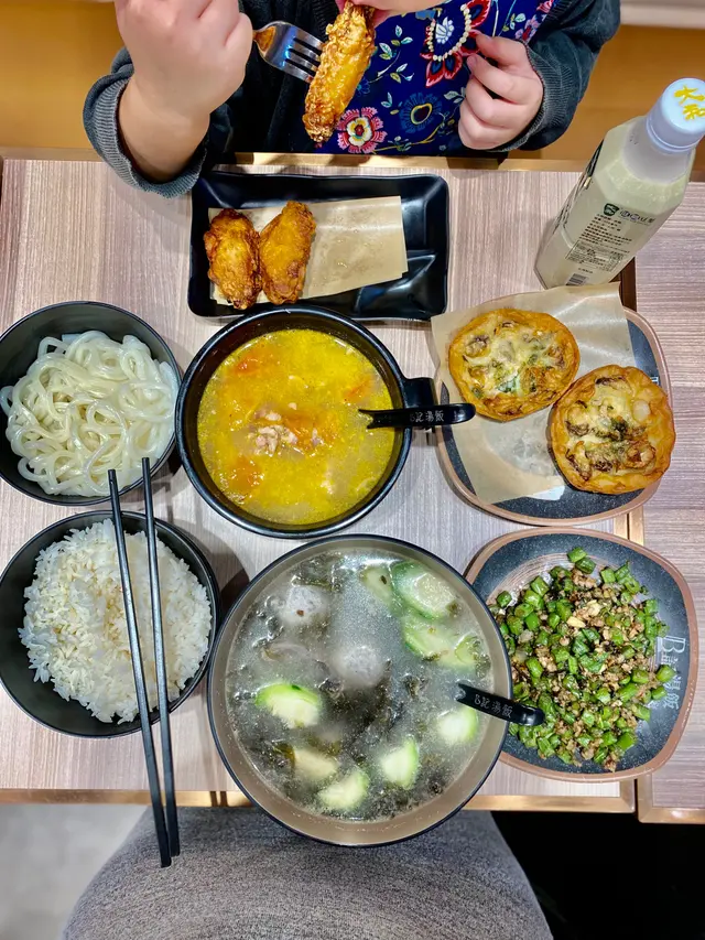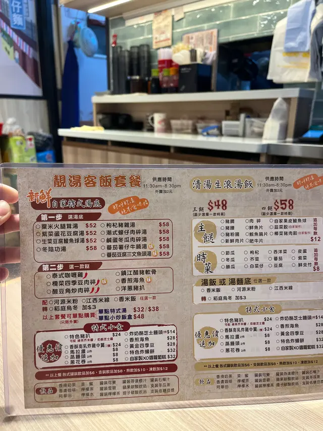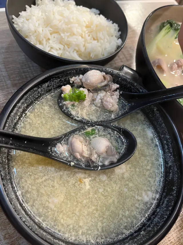 朋友邀請我入大西北一齊食飯~佢話新北江,其中一間必食就係呢間湯飯!款式嘅選擇都好多,主要分為煲仔小菜和自家靚湯。今次揀咗冬陰功湯+腰果蝦仁朋友就揀咗枸杞葉肉片湯+ 西檸豬扒剛剛落完單就聽到廚房話:冇晒冬陰功湯啦好彩我都有得飲!冬陰功湯足料,有蝦有蜆;可以飲到比較重嘅椰奶味,腰果同埋蝦仁嘅份量都多,加上西芹一齊炒,好健康!豬扒比較腍,西檸汁唔會太酸;枸杞葉都好新鮮,食落去唔會苦。如果出街食都想食到家常嘅味道就要搵呢間啦