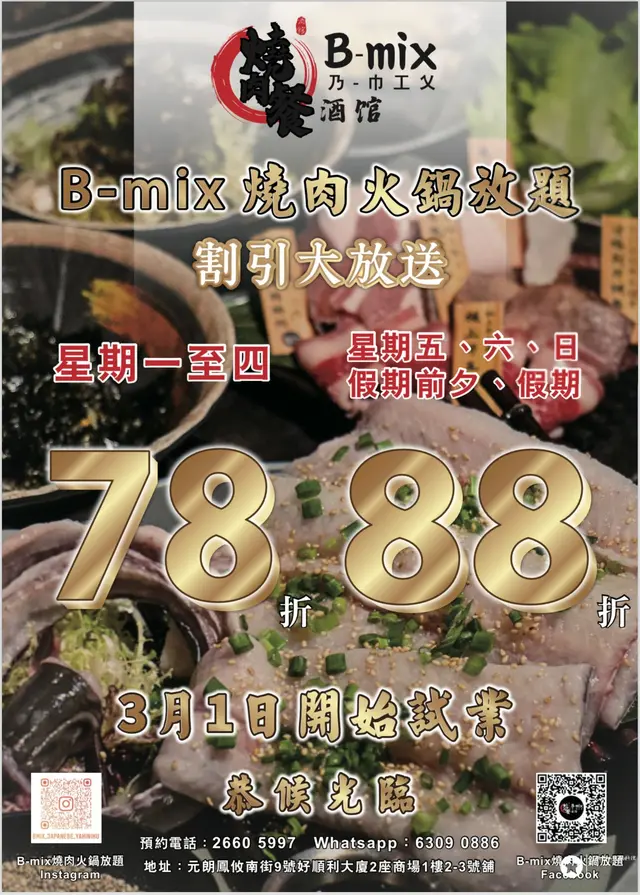 【元朗•B-mix 燒肉餐酒館】@bmix_japanese_yakinikuππππππππππππππππππππππππππππππ元朗隱世燒烤肉專門店人氣五品盛套餐(牛)新鲜沙律海苔米飯安格斯牛板腱厚切牛舌極上牛五花片黑豚猪腩薩摩赤雞髀肉蒜蓉牛油野菌唐生菜人氣五品盛套餐擁有精心挑選的多樣化燒烤,呈現豪華且多元的日式燒肉體驗。整體味覺旅程從新鮮沙律開始,配合海苔米飯提供了充足且微妙的味蕾開胃序曲。新鮮沙律以其爽脆蔬菜搭配獨特醬汁,為這頓豪華套餐注入了一股清新氣息。各種蔬菜的多樣性和色彩組合不僅討喜,更呼應了健康元素,為接下來的重口感燒烤正餐做了完美鋪墊。接著是菜單中的海苔米飯,它不單是配菜,更讓人驚喜於海苔帶來的鮮明海味和米飯的綿密口感的結合,為後續燒烤肉品的豐富口味打下基底。燒烤部份開始於安格斯牛板腱,這部分牛肉以其適中的油脂和嫩度聞名。燒烤後的牛板腱既保留了肉質的多汁,又呈現出炭火的獨特香味。厚切牛舌的加入則是這頓盛宴中的極致享受,其豐厚口感和獨具的嚼勁,經過燒烤鎖住了肉類的原汁原味,稍加鹽份即成為饕餮美味。極上牛五花片則是為愛嚐新鮮事物的食客提供了另一層次的口感。五花肉的油花分布平均,入口即化,透露著頂級燒肉的尊貴與細膩。黑豚豬腩則為整體套餐增加了不同的肉感。以其獨具的味道和燒烤至剛剛好的脆皮,提供了與牛肉截然不同的美妙口感對比。薩摩赤雞髀肉展示了雞肉在燒烤中的精華,其肉質堅實且不失嫩滑,兼具了雞肉鮮美與煙燻的混合韻味。蒜蓉牛油野菌則完美融合了野菌的大地香氣與蒜蓉牛油的層次風味,為肉品帶來額外的豐富口感和香氣提升。人氣五品盛套餐(牛)精心搭配了多種肉品與配菜,不僅美味多層次,還體現了燒烤料理的精緻與豐富性。餐廳環境:🔥🔥🔥🔥🔥服務質素:⛄⛄⛄⛄⛄食物味道:🍾🍾🍾🍾🍾性價比:🎟️🎟️🎟️🎟️🎟️消費 HKD 398✨✨✨✨✨✨✨✨✨✨✨✨✨#元朗美食 #B-mix 燒肉餐酒館 #web3元朗B-mix 燒肉餐酒館元朗鳳攸南街9號好順利大廈2座商場1樓2-3號舖…Read More