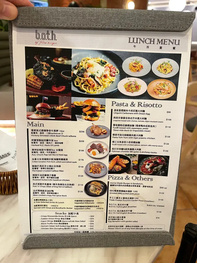 Burger🍔中間一定係夾漢堡 / 炸魚...?沙律碗只係配生果🍓🫐 • 蔬菜🥗...?奶昔🥤係生果 • 乳酪 • 牛奶🥛...?最近b.o.t.h. x 百福®既聯乘,推出左幾款加入豆腐既美食,健康又有創意💫岩晒要Keep Fit既朋友🙆🏻♀️~•~•~•~•~•~•~•~•~•~•~•~•~•~•~•~•~•~•~• ▪百福豆腐牛油果燒南瓜乳酪燕麥沙律碗 ($98)依碗推介❣️每日都要食多種唔同顏色既蔬菜🌈用左百福鹽滷硬豆腐(外脆 • 有咬口)。FreshFresh既味道,甜甜燒南瓜🎃配住乳酪 • 燕麥脆脆,fresh得黎滿滿飽足感🤰🏻.☀️ Lunch Menu ☀️▪慢煮美式煙燻帶骨牛肩胛10oz 配薯角 • 蔬菜 ($238)表面煙燻香氣幾出,牛肉慢煮得軟嫩🐃配埋炸薯角 • 多種蔬菜(粟米🌽 • 意大利瓜🥒...),份量十足。有3款醬汁(芒果醬🥭 • 美式燒烤醬🔥 • 秘製醬). ▪煙三文魚菠菜小茴香螺絲麵 ($128)Creamy忌廉汁,煙三文魚🐟 • 菠菜外,仲有配多種配料(甜椒🫑 • 蕃茄仔🍅...).▪加配餐湯 & 餐包 (加+$15) 濃稠蘑菇湯🍄🟫▪加配小食 - 香辣雞翼🐥 • 3pcs (加+$38) 外皮脆卜卜,配菜絲沙律🥗解解油膩感.▪野飲▫️荔枝茉莉花梳打 (加+$16) 生果與 • 花茶香氣結合,清新清爽🍹▫️熱 • 鮮奶咖啡 (加+$16) 拉花飲到低都仲Keep到☕️.~•~•~•~•~•~•~•~•~•~•~•~•~•~•~•~•~•~•~• 🔺以上價錢 💁🏻♀️需另加𝟏𝟎% 服務費🔺Menu有素食選擇🌱~•~•~•~•~•~•~•~•~•~•~•~•~•~•~•~•~•~•~• …查看更多