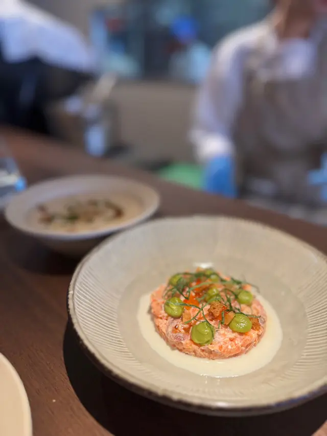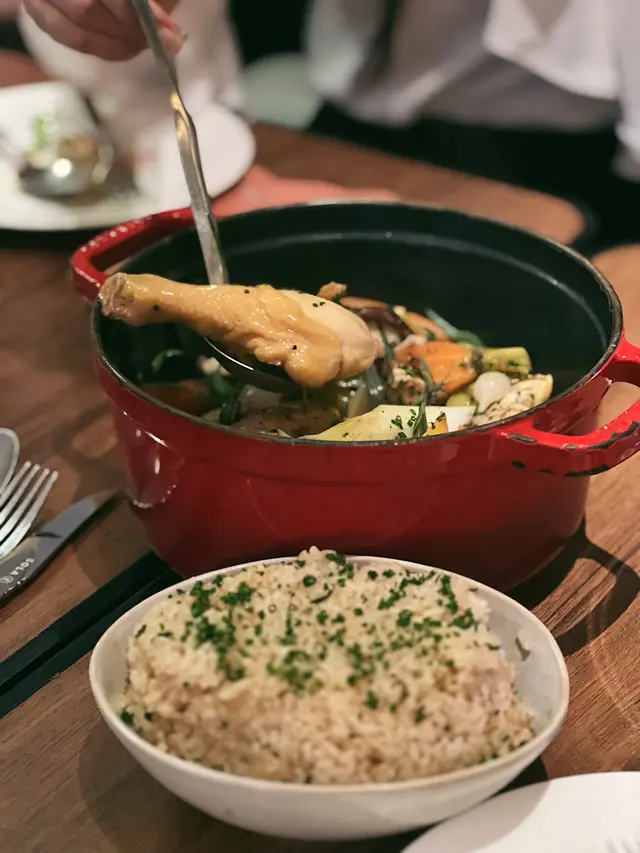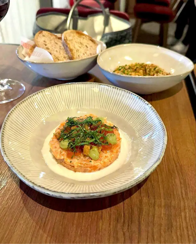 人多食中餐,人少食西餐。今次就去試下中環法式小餐館,位置唔算起眼,但係都算方便。座位唔多,裝修幾別緻,不過用餐區域講野幾應聲,人多就有少少嘈。 Tartare de Trulte (Smoked Salmon Trout Tartare) 煙三文魚他他幾好味,少少咸香加埋牛油果 Palourdes (Local Short Necked Clams) 呢個蜆落左好多唔知咩herbs,落牛油就無咩好講,加埋紫菜又幾好味 Salade De Tomatoes Fraiches (Cherry Tomatoes) 簡單一個車厘茄沙律,加左西瓜,兩紅相遇,仲有少少薄荷葉 Polsson Grille (Grilled Fish) 一直以黎都覺得西餐嘅魚係麻麻地,呢個佢話係燒嘅,但係就似蒸完用火槍燒下塊皮咁,味道都唔差嘅,用左大量herbs同薯仔黎襯托出魚嘅鮮味。 Cote De Boeuf (Deboned Grilled Ribeye) 就係好純粹嘅燒牛扒,唔係超級脆面嗰隻,有佢應有嘅味道 Pomme Puree (Homemade Mashed Potatoes) 呢個薯蓉不得不提,十分綿滑 餐牌上面嘅食物款式唔太多,但係海陸空都有齊,唔算得上十分推介,但係一試無妨。…查看更多