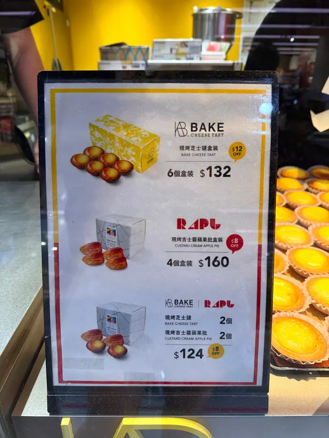 這間來自日本的人氣糕點店,海外分店位於銅鑼灣的崇光百貨,集結旗下二間品牌BAKE CHEESE TART及RAPL,主打現烤芝士撻及蘋果批。門面以紅色黃色為主調,專門提供外賣服務,半開放式廚房能欣賞到製作過程,櫥窗擺放整整齊齊的新鮮烘焙品。現烤芝士撻 - $24招牌芝士撻採用上等優質的北海道濃厚新鮮芝士及牛乳等製作而成,獨門秘方調配奶油乳酪,打造出最好的芝士內餡,軟嫩的慕絲有著濃郁的奶香同芝士香之餘,又帶有一絲清爽的酸味,完全不膩口,再採用二次烘烤撻皮,極酥脆鬆化。朱古力芝士撻 - $26嚴選優質的可可豆,融合朱古力的堅果原味,襯托出忌廉芝士的醇厚和酸味。士多啤梨芝士撻 - $26混入當季士多啤梨的果醬及果泥,酸酸甜甜很清新。食法方面,若無法當日即時食,必須置於冷藏或冷凍方式保存,並盡快享用。當天食用以常溫保存則可;冷藏則會令內餡的芝士會變得更緊密,口感像乳酪;冷凍則有點像芝士雪糕的口感;或可用烤箱稍微加熱,如同新鮮出爐現烤般,可享受三種不同風味。查看更多