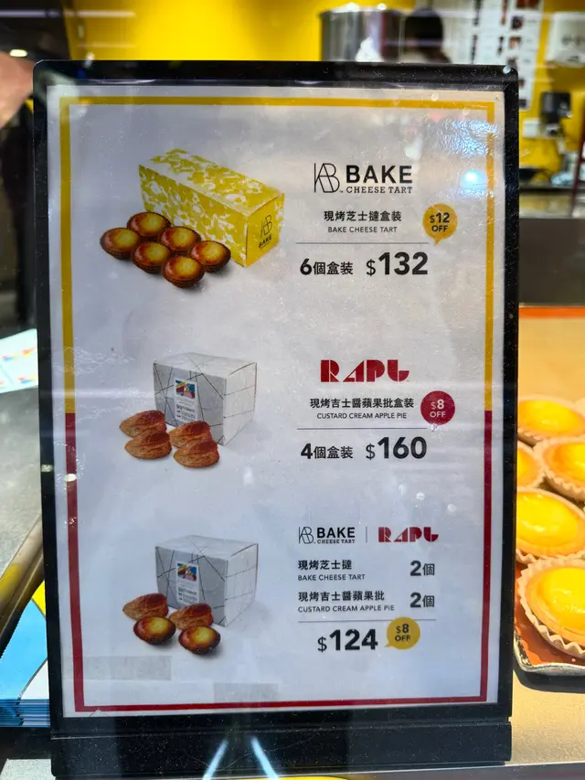 這間位於銅鑼灣Sogo的日本北海道人氣過江龍「BAKE WORKS」,有齊旗下兩間品牌BAKE CHEESE TART和RAPL的人氣產品,主打現烤芝士撻和招牌蘋果批。.現烤芝士撻撻皮口感酥脆,而且充滿牛油香,內餡口感細膩順滑,更有3款口味選擇。.🔺原味現烤芝士撻 $24🔺朱古力芝士撻 $26🔺士多啤梨芝士撻 $26.原味芝士撻芝味十足,芝士控一定愛上;朱古力芝士撻朱古力味道香濃醇厚;而期間限定的士多啤梨芝士撻,充滿士多啤梨清香,與咸香芝士互相融合,充滿特色。查看更多
