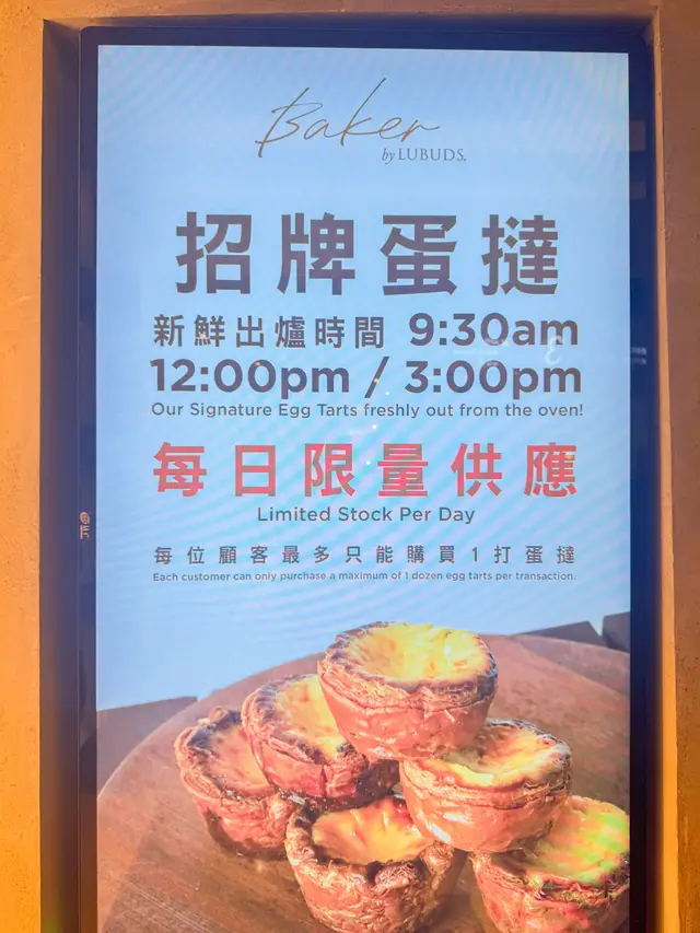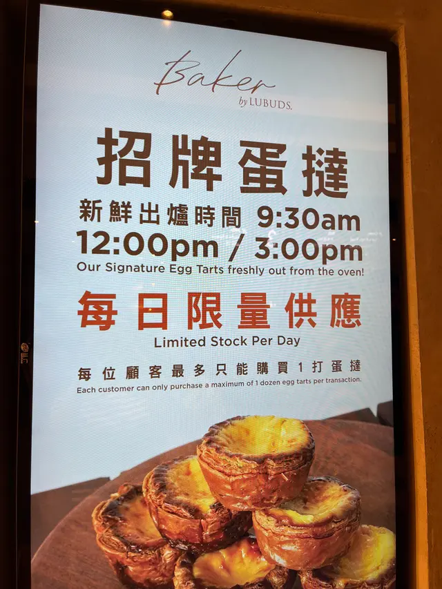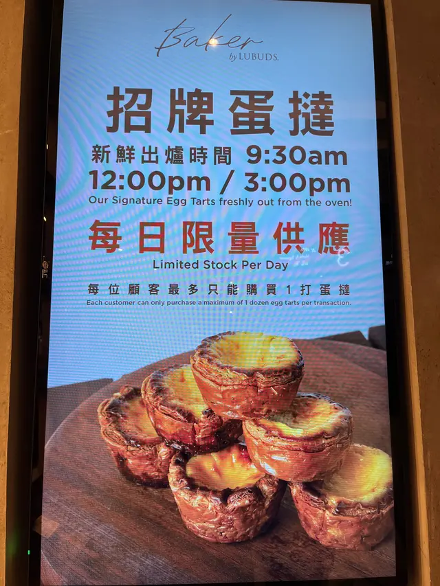 呢一間baker by lubuds位於太古城中心3樓嘅一個角落,聽講之前好出名,但而家已經過咗人氣?!展示櫃上面擺滿咗各式各樣嘅包,有牛角包、蛋撻、千層酥同埋金寶酥等今次試咗呢一間店大熱同埋必食嘅蛋撻$13一個蛋撻蛋撻雖然唔係啱啱出爐,但係攞上手都暖暖哋,咬咗第一啖佢嘅脆皮咔嚓一聲,外皮有勁濃牛油嘅香味,加上食到中間少少嘅甜蛋漿,超幸福,佢嘅蛋漿咬到中間好似就嚟溶出嚟咁,蛋漿味道偏甜,但卻唔係死甜,同鹼液嘅味道配合得好好,上面嘅焦糖味唔會好重,個蛋好嫩滑,食嗰陣啲脆皮酥到跌晒落嚟朱古力麻糬波波呢一個產品之前食過幾次蛋撻都好似冇見到,所以猜測係新品,一於好奇所以就買咗嚟一試,佢分別有三種味道包括抹茶、士多啤梨同埋朱古力,作為朱古力愛好者覺得佢朱古力粒粒嘅份量都幾多,但第一啖咬落去佢嘅包皮唔夠朱古力味,食落去嘅口感雖然煙韌,但係咬落去好似咬緊一張紙咁,口感有少少難以描述,整體上有少少失望…查看更多