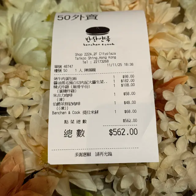 Banchan & Cook太古店充滿文青風格,座位之間間隔充足,既有PRIVACY又夠闊落。最大亮點必定是隨處可見的乾花裝飾,特別映餐桌內精心佈置花花擺設。餐廳主打韓式fusion 菜。另外亦設有自助鮮果水供應,誠意十足。加上,Banchan & Cook採用半自助式點餐及取餐模式,全日不設加一服務費,對我們來說是一大好處呀。🍝 1. 橡果黑毛豬卡邦尼意粉橡果黑毛豬瘦中帶肥卻不膩口,食落帶咬口同油香。意粉亦帶濃濃蛋香和忌廉,掛汁力強,黑毛豬作配料比傳統煙肉版本更多層次。🥓🥬 2. 燒醬油黑毛豬白切肉配大醬生菜韓國經典五花肉生菜包的升級版,厚切五花腩先以韓式醬油醃製燒香,外表帶微微焦香,肉質軟腍。配上新鮮生菜、泡菜、蒜片及清辣青椒絲,混合鹹、辣、酸香,一啖落肚超滿足。🌶️🍗 3. 火山炸雞誠意推介炸雞迷必食!火山炸雞屬辣味之選。炸雞一定要揀連骨,火山醬略帶辛辣感,炸雞外脆內嫩,辣得來伴隨微甜,非常過癮。🍧 4. Banchan & Cook 提拉米蘇Tiramisu整體口感偏mousse狀,內餡有紅豆和咖啡香,容易入口。🍹 5. 軟綿綿紅豆·豆花鮮奶咖啡飲品以豆腐花、紅豆鋪底,加入鮮奶,面層再沖上濃縮咖啡。三重分層,口感豐富。好似飲緊咖啡版紅豆豆腐花,新鮮感層次感爆登。🍵 6. 濟州綠茶鮮奶人氣必喝!首先茶香突出,再融合鮮奶。飲落不澀口,舒舒服服消滯醒神。Banchan & Cook 太古店性價比強,一定深得上班族喜愛。…Read More