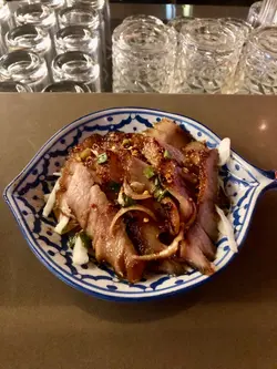 今日晚餐後, 朋友約我一同去銅鑼灣SOGO 附近飲嘢!酒吧在軒尼詩道525號澳門逸園中心27樓! 銅鑼灣地鐵站D出口一出就到! 其實在27 樓,户外的景色優美開揚;裝潢設計是以西式酒吧為主調! 室有一張大bar 枱,擺滿大量不同的酒類;燈光柔和,播放悦耳的音樂和英文歌! 地方整齊寬敞,坐得舒服!餐牌上的食物有日式串燒和泰國特色食物,還有不同類型的酒類供應: 威士忌酒、紅酒、白飲和特色的雞尾酒,真是一個喝酒的好地方!🐷泰式燒豬頸肉燒得好香口,泰式的酸辣汁很惹味!豬肉煙韌有咬口,唔會太乾;肉汁豐盈! 泰式的做法很地道! 配上秘製酸辣汁料,更帶出食物味道的層次!以此來伴酒來吃更是一流!🥤 Cocktail - Long Island Ice Tea長島冰茶是一款充满懷舊和經典的雞尾酒,以伏特加、龍舌蘭酒和琴酒為調製的主調! 味道清新獨特,適合追求層次的人!🍸 Cocktail - Vodka Cosmopolitan 這是一款好以伏特加酒為主調的雞尾酒,酒味唔會太濃烈! 加有檸檬汁和橙香酒來調較,味道清新;有輕柔清爽感覺! 🍷紅酒作為house wine,味道都幾淳厚易入口;配吃食物真的不錯!🍸白酒 這個 house wine 都幾fruitee, 果香味清新,可以一喝!這間高質數的的酒吧,酒類飲品多選擇! 調酒師的技術真好, 又耐心介紹雞尾酒的調製;真的貼心! 每個星期二和星期六有live band 駐場,晚上九時多至凌晨!真的值得推介來暢飲!…查看更多