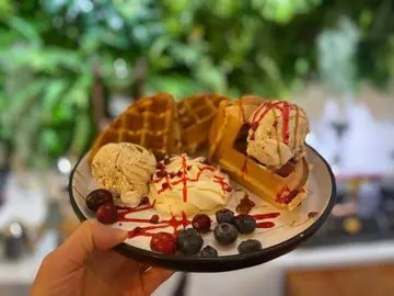 下午茶一流的咖啡小店,室內裝修以木為主調,環境簡約舒適,位置不多,但平日下午人流不多,不用等候。 當日二人點了一份香蕉窩夫配搭伯爵茶。 窩夫是即是製作,等了大約10分鐘。窩夫必須店全份才配有雪糕,全份份量很大,香蕉很足料。窩夫鬆脆剛好,香蕉也吃得出很新鮮,熟度剛好。伯爵茶是普通茶包沖的,沒有驚喜,但配合窩夫十分解利。…Read More