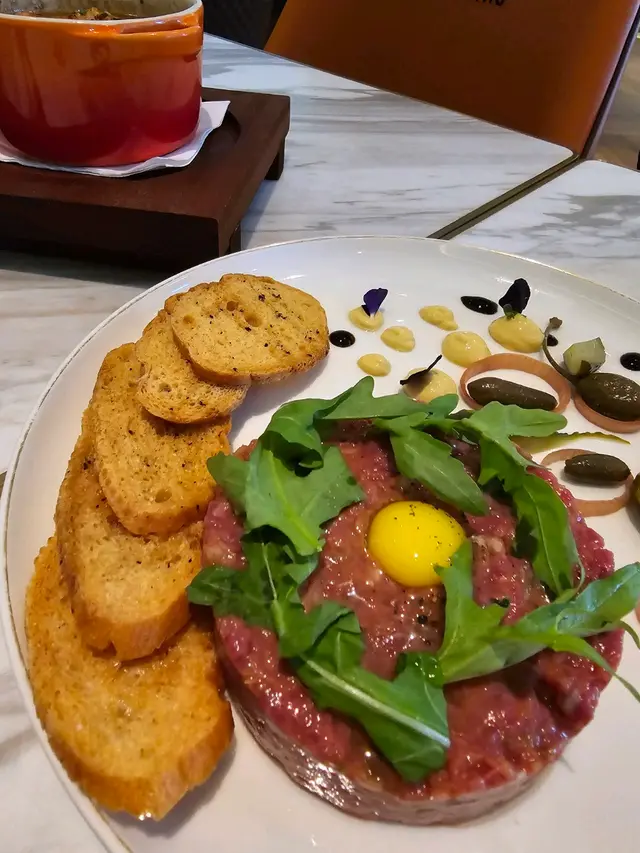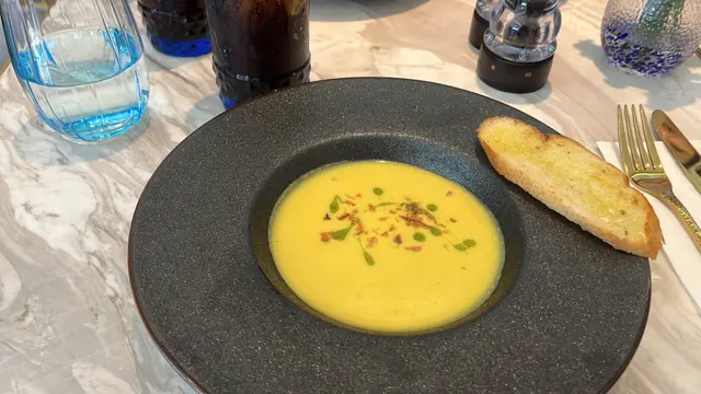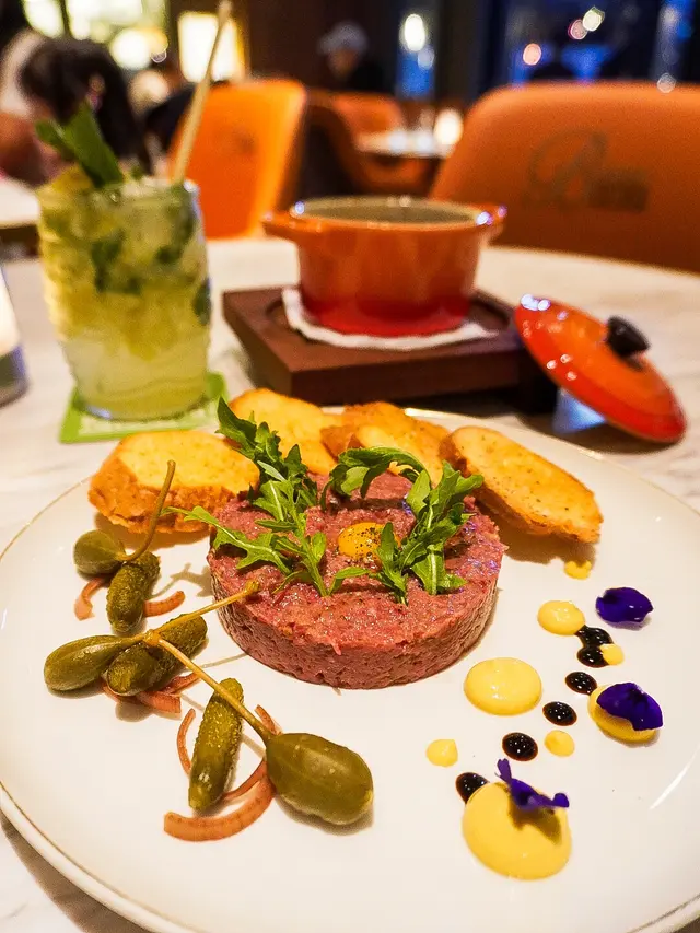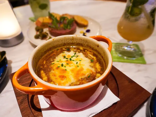 餐廳座位舒適,比較明亮,好多外國人喺入邊用餐。🤔經典法式洋蔥湯味道幾濃幾重口味,對於我個人口味就覺得偏鹹。🤔Citrusy Pomegranate Quinoa 柑橘石榴藜麥主要係以藜麥為主,菜嘅份量唔多,mix 埋粒粒嘅石榴,酸酸甜甜。味道可以,但係沙律菜嘅份量唔多,如果想食多d 菜,呢個就唔啱啦。👌🏼Mac-cheese 芝士通心粉 濃郁嘅忌廉味同芝士味,通粉幾爽滑,有拉絲。味道可以。👌🏼Black Truffle Risotto 黑松露燴飯 忌廉味重,但只有好少嘅黑松露醬,黑松露味道唔夠。👌🏼Rib Eye 肋眼扒-12盎司有輕微嘅炭燒味。雖然唔係特別出色,但係質感同味道都係符合正嘅預期同口感。👌🏼炒蘑菇 :符合預期嘅味道。…查看更多