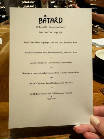 🌟香港四大三黃雞名店🌟 💰$1,500- $2,000💰🐮Beef Tartare Cannelloni $190 ❣️以自法國東北部的牛肉做成生牛肉他他混合雞蛋蛋 芥末 青蔥釀進脆皮捲鬆脆外皮 與軟糯牛肉口感形成強烈 👍🏻👍🏻🍅Japanese Fruit Tomato Tart with Fennel Pollen and Burrata $280 ❣️師傅自家製酥皮 酥皮鬆化 配上日本蕃茄的鮮甜 茴香花粉 橄欖油作調味 水牛芝士的香軟綿滑 層次感豐富 🥦 Broccoli Agnolotti with Black Truffle $290手工製意粉 柔軟有彈性 即刨黑松露香氣十足肉質柔嫩 配搭自家製迷迭香 整體味道鹹香平衝🧚🏻♀️Cold Angel Hair, Kristal Caviar, Kombu $390 ❣️❣️使用法國Kaviari 魚子醬Kristal 色澤金黃 味道豐盈 帶有杏仁味經典魚子醬💕幼滑的天使麵配鹹鮮的魚子醬❤️以昆布汁 黑松露油調味 鹹香鮮滑盡在口中 可惜分量較少 🙈🐣Bâtard’s Signature Roast Chicken, Warm pilaf Rice $880❣️❣️參考傳統廣東燒雞煮法 獨以選用本地新界三黃雞以鹽水浸煮半天 再隔水蒸 後以200度高溫烤焗的手法 烤至皮脆肉嫩並以香茅 大蒜 黃薑雞飯作配 香氣撲鼻🥰外層雞皮金黃香脆 內裏新嫩而極 雞胸也保持香嫩米飯吸盡雞油精華 發揮出色 盡顯法中菜柔嫩香濃感💕💕環境⛺️The Fine Wine Experience 珍貴的玻璃館紅酒櫃作背景本地年輕插畫師在黑板牆上以粉筆畫描繪酒莊的名字以酒杯奧地利品牌Zalto手工吹製玻璃杯 正顯活潑俏皮又精緻的個性✨✏️命名Batard為法國布根地的小酒區 也是法國經典麵包名字與餐廳的形象匹配Dining Tips 🖍️▪️將搬至私人葡萄酒俱樂部Club Bâtard⏰ Mon - Thu 18:00 - 22:30 Fri -Sun 12:00- 14:00 | 18:00 -22:30 📍Porton A of Shop E1 & E2, G/F, Viking Court, 165-166 Connaught Road West📞2318 1802 …查看更多