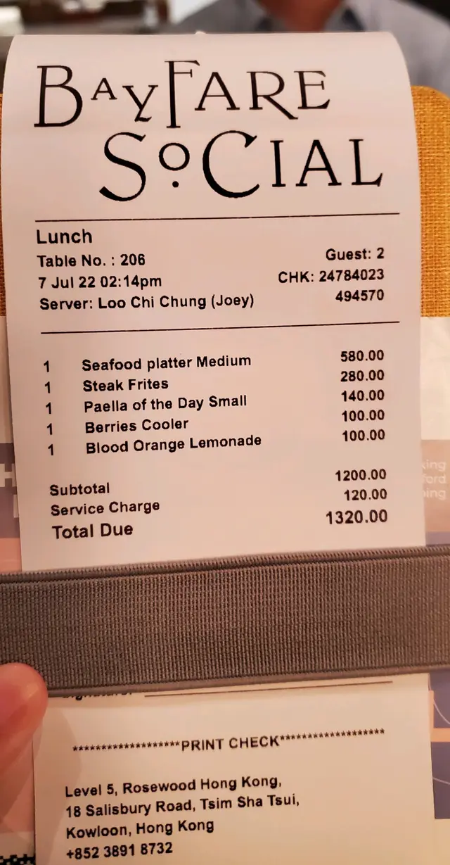 Bayfare Social (尖沙咀) 網址: https://s.openrice.com/QrbS0qFK900 地址: 香港尖沙咀梳士巴利道18號香港瑰麗酒店5樓 電話: +852 38918732