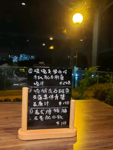 半自助晚餐黎講都幾多嘢食牛扒味道正常差對得住價錢有雪糕選擇仲有pancake蛋糕而嘢飲又任針都唔錯雖然係對住海景但係太黑喇乜都睇唔到印像中都好多冷盤嘅半自助選擇都係不外乎火腿有煙三文魚呀