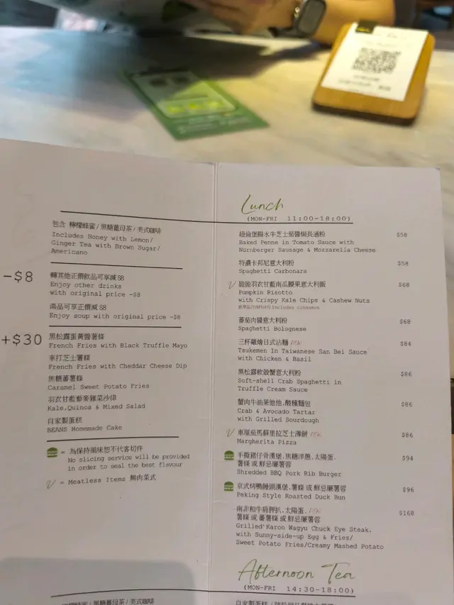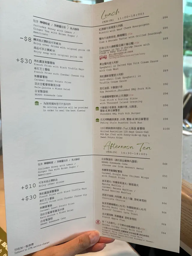 今天和朋友來到這間餐廳聚會,平日的中午有提供午市套餐,我們分別點了黑松露軟殼蟹意大利粉和手撕豬仔骨漢堡,另外做會員送精選蛋糕,選了開心果蛋糕。黑松露軟殼蟹意大利粉:軟殼蟹是即炸的,外皮十分酥脆香口,每一口都充滿著淡淡的蟹肉香氣,意粉質感煙煙靭靭,黑松露醬汁的口感亦不會太膩,是一道出色的意粉。手撕豬仔骨漢堡:豬仔骨手撕之後便做成漢堡,質感很柔軟嫩滑,肉汁四溢,而且醬汁甜甜的,非常惹味可口,薯條亦是即叫即炸,味道相當不錯。特濃開心果杏仁蛋糕:雖然開心果味都算濃郁,但是這款蛋糕卻沒有太多忌廉,口感比較乾,個人便不太喜歡了。凍美式咖啡:午市套餐送飲品,凍飲都不用加錢,我們便點了凍美式咖啡,可以選擇加奶,咖啡味都算香濃,味道還可以吧。價錢方面,軟殼蟹意粉$86,手撕豬仔骨漢堡$94,飲品跟餐免費,蛋糕會員免費贈送,餐廳設有加一服務費,兩人總共$198。總結來說,今次的食物味道相當不錯,而且平日中午的價錢相當划算,下次有機會都會平日中午來吃。…查看更多