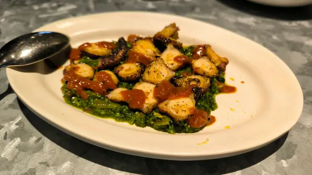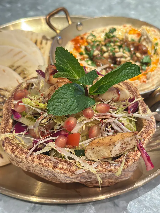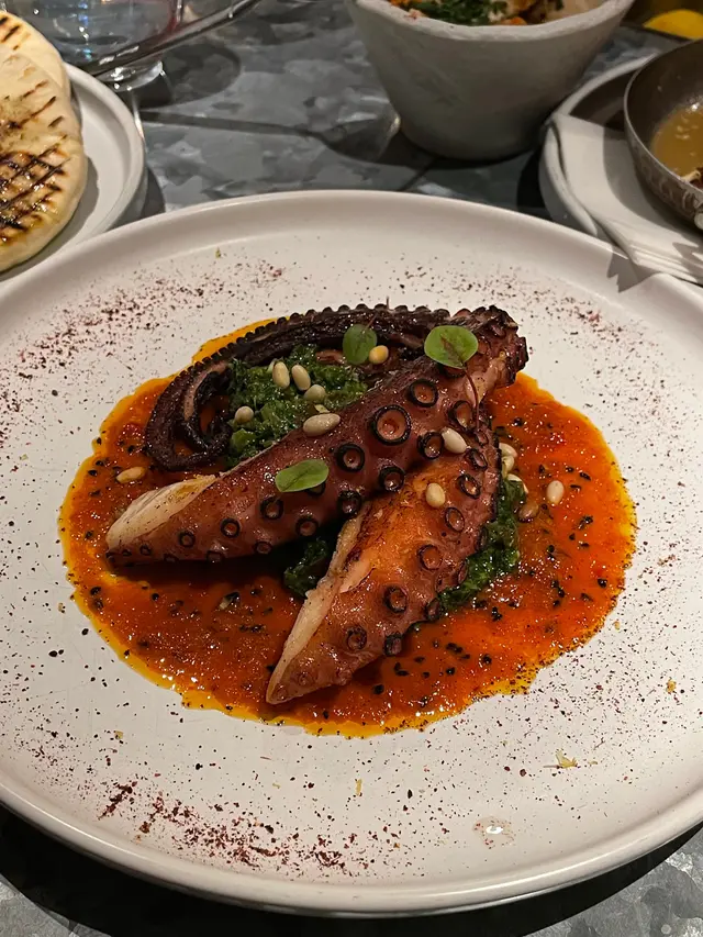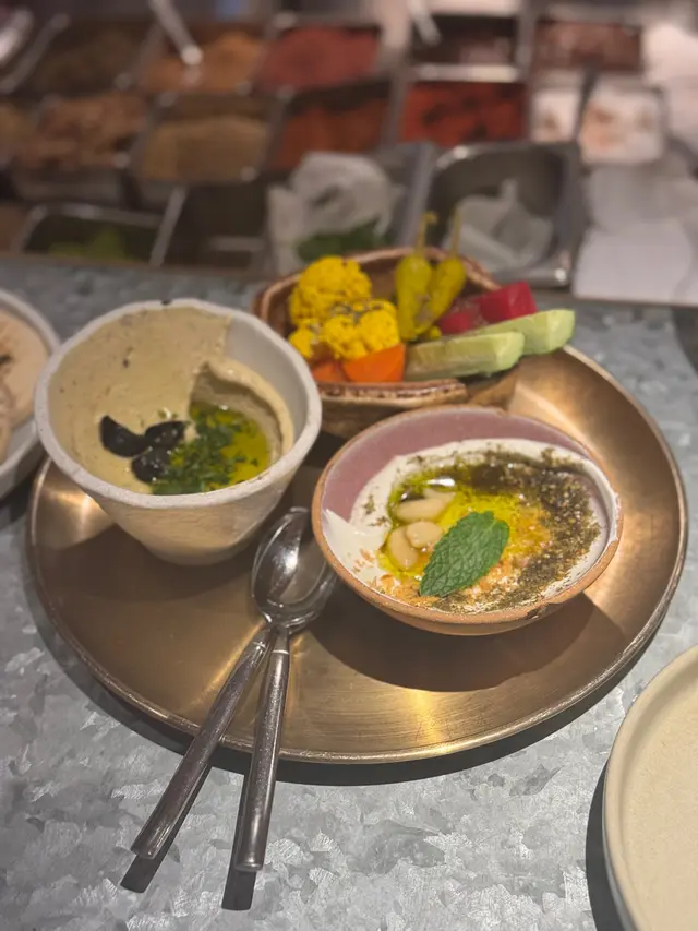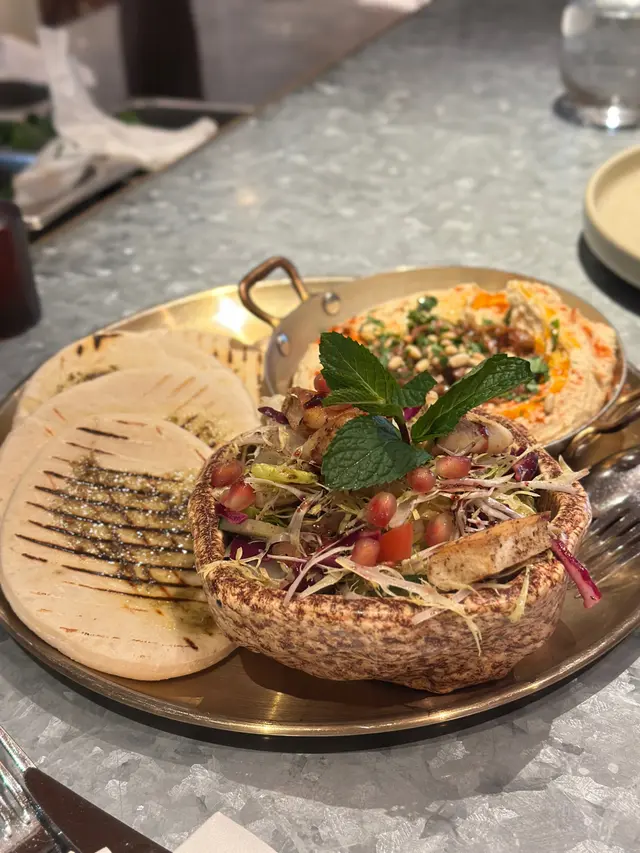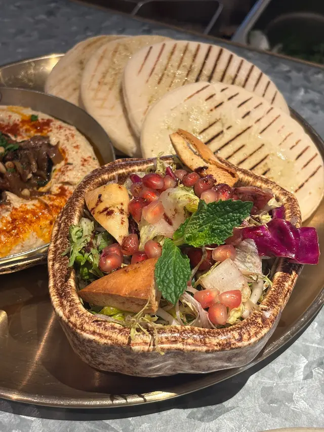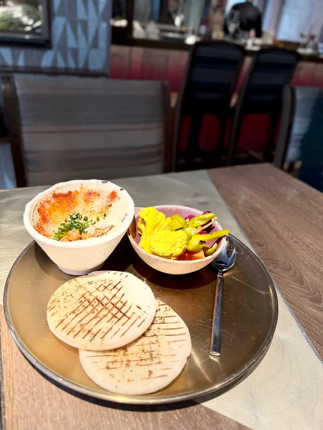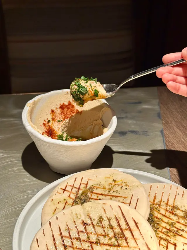 中環高質中東菜🤩⚠️只係營業到6月21🥲Bookmark左黎間餐廳好耐但係個人一路對中東菜都有啲保留🙈因為怕調味/胃口唔啱🙈得知佢只係做到6月就決定一定要去試下🥹點知真係有驚喜🥹🌟Smoky hummus ($75) & Pita bread ($55)鷹嘴豆泥係食中東菜必點!好濕潤滑口,一定要叫埋pita bread黎食!🌟Honey baked feta ($190)芝士表面烤過,咸香芝士淋左薰衣草蜂蜜,甜咸結合,味道好正 🧀 一樣可以搭配pita bread黎食!🌟Roasted pine nut eggplant ($190)茄子超有驚喜🤩 醬汁係yoghurt同pesto 嘅結合體,面頭加埋pine nut 同新鮮紅石榴令口感相當豐富!非常值得一試!🌟Grilled Harissa Octopus ($295)八爪魚賣相一流 🐙 大條得黎口感軟熟,配搭harissa sauce 同埋檸檬汁,酸酸辣辣味道好夾!🌟Rack of lamb ($495)羊架燒得啱啱好,入面顏色粉嫩,口感軟熟,不過個人覺得就咁食好食過點醬汁,個醬會蓋過羊肉嘅味道 🐑…查看更多