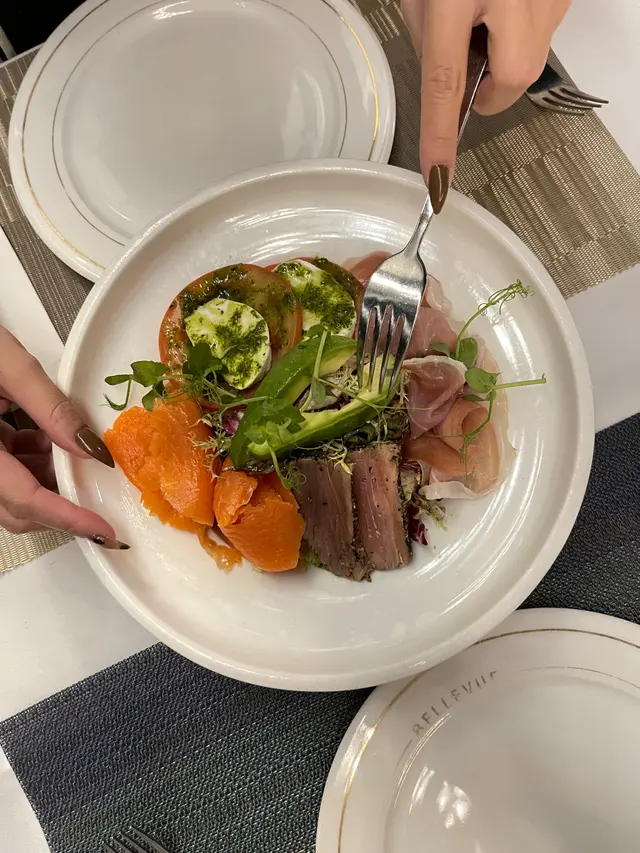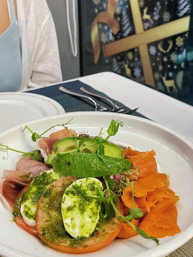 蕃茄水牛芝士沙律配煙三文魚及吞拿魚