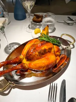 WHOLE ROASTED CHICKEN WITH PETIT POIS A LA FRANCAISE