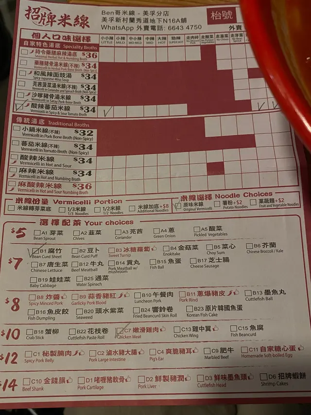 Ben哥米線 (美孚) 網址: https://s.openrice.com/QrbS0lzM400 地址: 香港美孚美孚新邨第5期蘭秀道2號地下N16A號舖 電話: +852 66434750