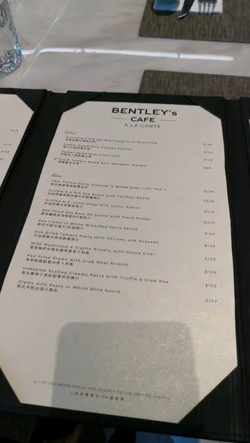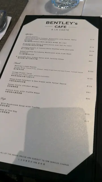 見booking app 晚飯時間有半價梗係book嚟試吓啦原來呢間係名車賓利Cafe到去成個感覺好Modern,行簡約風,但又不失高貴雖然我哋booking app book 係半價,但係啲Staff都冇因為我哋book半價而冇禮貌所有主餐牌有半價優惠,飲品甜品正價我哋點左三樣嘢1)薯條配黑松露蛋黃醬薯條炸得好香脆即叫即炸,條條都脆卜卜,黑松露蛋黃醬有濃濃嘅黑松露味,正2)紐西蘭羊架配蒜蓉汁羊架唔喺度都好好食,有啲會好多肥膏,有啲就好so,呢舊羊假真係不得了,舊肉好林好有羊味而且無乜筋3)鵝肝伴黑松露野菌意大利飯鵝肝煎得好香脆,令到成個飯昇華哂,黑松露配野菌係絕配,正!…查看更多