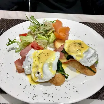 位於觀塘Bentley showroom旁嘅cafe,同樣屬其集團經營;明明只有兩枱客人,但一入門店員就問有無訂座,後尾先偷聽到有啲座位要預留起,可能留俾買車客🧐?Set Lunch價錢$122-162,六款選擇,不外乎海陸空扒餐、Pasta同Risotto;沙律餐湯二選一,配一杯餐飲。沙律不過不失,談唔上新鮮,感覺係雪藏菜;紫洋蔥比例佔半,怕洋蔥味嘅人較難接受。指明三成熟,上枱七成,差距甚遠;牛扒質素唔合格,無牛味,肉韌難切,多筋,幸虧燒汁調得幾惹味,拉返少少分。以薯蓉及煎煮茄菜作伴碟,前者留有薯粒,比較有咬口,不同坊間混和大量牛油嘅軟滑口感;茄瓜、西蘭花、甘荀煎得油身偏焦。成個餐最好應該係杯茶,因為用現成茶包沖成😂薄荷味濃,回甘,食完肉類飲幾解膩。每樣野一食完店員就趕住收碟,嘢飲未飲哂已經催賣單,呢個價錢呢個服務,真係只此一次。…查看更多