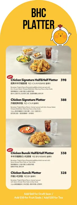 去完韓國返嚟 掛住想再食 見香港有去試吓Menu同韓國有分別,冇韓國嗰隻白色乳酪醬汁點隻雞