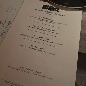 來到Bibo要留意的, 還是她那大量的當代潮流Artists的作品, 如Kaws, 奈良美智, Space Invader及Andre Saraiva等, 基本上來這裡是看作品多於吃飯吧! 這裡的菜式都是很Contemporary的西方菜式, 前菜出奇地都帶有強烈東南亞風, 特別是在醬料上, 例如是沙嗲醬配千層及帶子配喇沙醬, 味道濃烈但不過火. 主菜則是典型的當代風, 鮟鱇魚柳配上酸汁再加上火腿, 咸酸味道帶出了魚的油香; 燒鵪鶉肉質軟滑, 炭香較強, 炸鵪鶉蛋內裡流心, 水準和她的藝術展品一樣見得人. 甜品又是另一種路線, 是少見的中式元素, 日本桃配上腐竹和其汁液, 豆香和其甜味相映成趣; Dacquoise裡的Custard說是加了咸蛋, 但一點也不咸, 反而似是奶皇月餅的味道, 令我想起....中秋又來了! (笑)…查看更多
