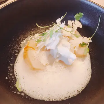 For a fancy birthday dinner! We ordered a 6-step ‘food imagination’. The chef will ask your food preference in advance. As my friend is vegetarian, the set dinner are all veggie and seafood. The risotto is not risotto but a plant like celery, which is very tasty with a delightful taste of sea urchin. We enjoy this dinner very much!…查看更多