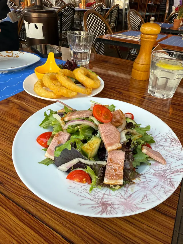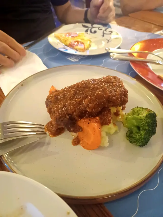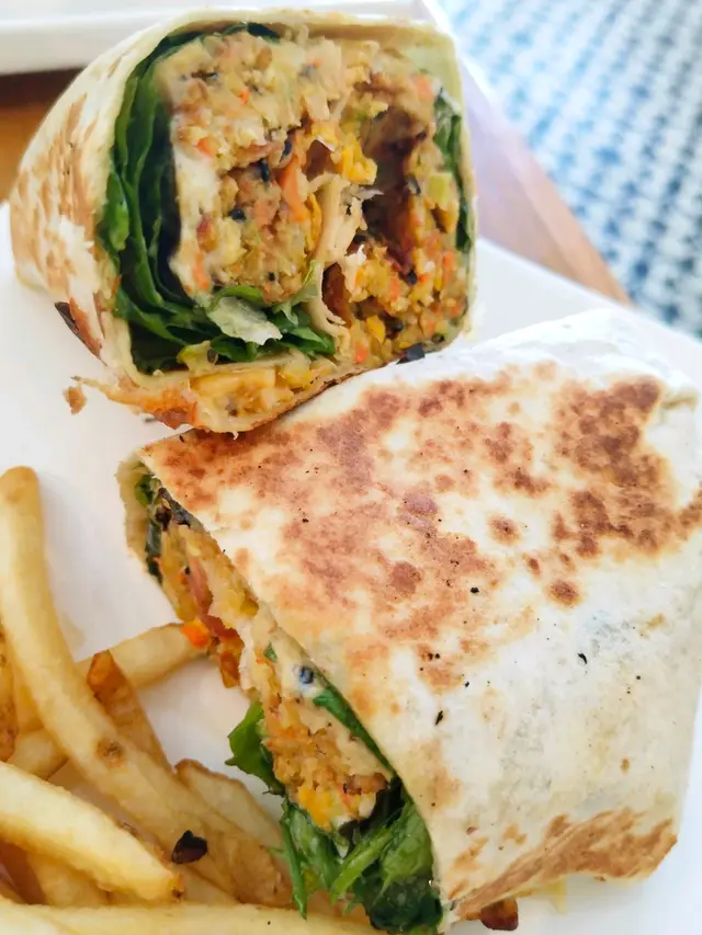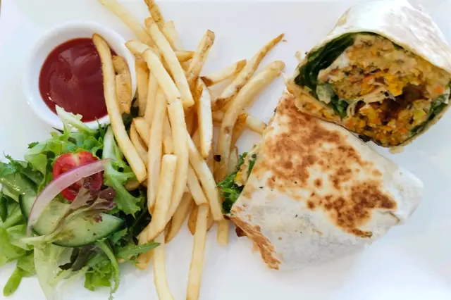 少入西貢,入嚟lunch前睇過Openrice食評,但冇邊間餐廳想試,因為有供應素食的多數係cafe,除咗貴(如Little Cove Espresso),仲好悶添~同朋友邊行邊搵,見到呢間餐廳喺店外棟咗個素食餐牌,亦有提供午市套餐。喺多個午餐選項入面,有「印度香料烤雞卷」,下面有行字話可改為「炸鷹咀豆餅鷹咀豆蓉卷」,所以直接點咗呢個餐,唔使單點素食。是日餐湯:午餐可揀湯或沙律,沙律寫明有肉;是日之選係西蘭花湯,跟湯有一小塊法式蒜蓉多士;湯有少少稠,但唔係忌廉果種厚重質地,飲落唔漏,份量適中,味道清清地亦有少少飽肚感;西蘭花的份量應該唔多,湯只呈淡綠色,飲落亦冇乜西蘭花味炸鷹咀豆餅鷹咀豆蓉卷配沙律、薯條:上檯時,已覺得好大份、足料;鷹咀豆餅/蓉有起沙的口感,好鍾意;調味唔重手,恰到好處,食得好舒服;份量大,可以2個人share再額外點多1個前菜/甜品,應該已經夠飽同滿足,健康美味;沙律新鮮,應該加咗檸檬黑醋汁,清新;幼身薯條,上檯時唔熱,味道正常;因為個卷,我會俾呢個餐5粒星,係日日食都唔會厭的食物烤雞配沙律、薯條:朋友的午餐;半隻烤雞,有肉汁,亦有少量醬汁;朋友食曬,味道應該唔錯凍黑咖啡:凍飲毋須加錢,味道正常餐廳環境幾好,每檯有花點綴,座位舒適,檯與檯之間距離闊落,適合傾計。剛入餐廳時都擔心中伏,因為1300去到,附近的餐廳已坐滿人,唯獨呢度無論室內、室外亦冇客,點知原來佢的食物水準幾高!餐牌上的食物選項乜都有啲,有啲「立立雜雜」,定位唔係太清晰,可能算係多國菜?坐到1330,開始多咗啲客,而侍應端出嚟的食物亦好香、好大份、好吸引,見有食客帶狗狗坐室外,佢點咗個沙律,份沙律滿滿一盤,主人同狗狗可以分享,令我都想計劃一下同狗狗一齊嚟。侍應的服務可以,唔係好殷勤,但加水、執檯好爽手,上菜亦幾快。我同朋友喺餐廳留咗1.5小時,可慢慢享用食物之餘,又能夠靜靜哋傾下計。…查看更多