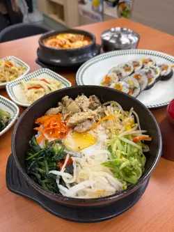 呢間韓國餐廳走平實路線,有韓國家庭式小店感覺,每次買小菜都會去呢d傳統小店,通常都會比較正宗同好食今次呢間Big Mama 大部份菜式都係$100以下,性價比不錯小菜有4款:菠菜、豆芽、生泡菜和椰菜花。最喜歡生泡菜新鮮,口感爽脆。韓式牛肋骨湯 $110牛肋骨煲得夠軟腍,骨同肉輕鬆分離,肉味香濃。湯頭雖然清但富濃香牛骨味,送飯一流。石鍋牛肉飯石鍋熱焫焫,配料有芽菜、菠菜、紅蘿蔔絲、椰菜絲同半熟蛋,好鍾意叫石鍋飯,多蔬菜夠健康。石鍋飯本秒口味偏淡,可自行加韓式辣醬調味,我仲會加少少生泡菜,令味道更有層次。水冷麵 $92麵質煙韌彈牙,可以自行落醋同芥末調味,夏天三十幾度食水冷麵真係好清涼消暑,好爽!…查看更多